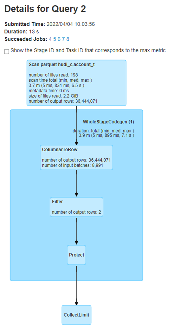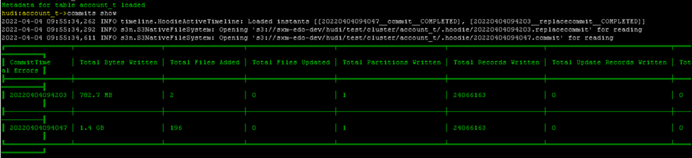 **_Tips before filing an issue_** - Have you gone through our [FAQs](https://hudi.apache.org/learn/faq/)? Yes - Join the mailing list to engage in conversations and get faster support at [email protected]. - If you have triaged this as a bug, then file an [issue](https://issues.apache.org/jira/projects/HUDI/issues) directly. **Describe the problem you faced** Hudi clustered table reads all the files instead of reading only clustered files generated. I have created a hudi clustered table using deltastreamer.. its command and configuration are below - aws emr add-steps --cluster-id j-3W0PJEH4IJMOB --steps Type=Spark,Name="Deltastreamer_account_t_c",ActionOnFailure=CONTINUE,Args=[--master,yarn,--deploy-mode,client,--executor-memory,10G,--driver-memory,10G,--executor-cores,5,--driver-cores,5,--jars,s3://XX/hudi/jars/spark-avro_2.12-3.1.2-amzn-0.jar,--class,org.apache.hudi.utilities.deltastreamer.HoodieDeltaStreamer,s3://XX/hudi/jars/hudi-utilities-bundle_2.12-0.8.0-amzn-0.jar,--props,s3://XX/hudi/props/test/cluster/account_t.properties,--enable-hive-sync,--table-type,COPY_ON_WRITE,--source-class,org.apache.hudi.utilities.sources.ParquetDFSSource,--source-ordering-field,commit_ts,--target-base-path,s3://XX/hudi/test/cluster/account_t,--target-table,account_t,--continuous,--min-sync-interval-seconds,10,--op,UPSERT] --region us-east-1 properties file info - hoodie.datasource.write.recordkey.field=poid_id0 hoodie.datasource.write.precombine.field=commit_ts hoodie.datasource.write.keygenerator.class=org.apache.hudi.keygen.NonpartitionedKeyGenerator hoodie.datasource.write.partitionpath.field= hoodie.write.lock.zookeeper.lock_key=account_t hoodie.datasource.hive_sync.enable=true hoodie.datasource.hive_sync.database=hudi_c hoodie.datasource.hive_sync.table=account_t hoodie.datasource.hive_sync.partition_extractor_class=org.apache.hudi.hive.NonPartitionedExtractor hoodie.deltastreamer.source.dfs.root=s3://XXXX/account_t/ hoodie.upsert.shuffle.parallelism=200 hoodie.datasource.write.row.writer.enable=true hoodie.index.type=BLOOM hoodie.bloom.index.filter.type=DYNAMIC_V0 hoodie.parquet.small.file.limit=0 hoodie.clustering.inline=true hoodie.clustering.inline.max.commits=1 hoodie.clustering.plan.strategy.target.file.max.bytes=1073741824 hoodie.clustering.plan.strategy.small.file.limit=629145600 hoodie.clustering.plan.strategy.sort.columns=poid_id0,status commit information below -  After first commit, clustering is done where 196 small files are converted into 2 larger files. I am running below query in a spark program against hudi external table– select * from hudi_c.account_t a where a.poid_id0 =1234567 In spark UI I see that all the files (196+2=198 files) are being read instead of only 2 larger files.  **To Reproduce** Steps to reproduce the behavior: 1. create properties file with configs as mentioned above. 2. run the deltastreamer command as mentioned above. 3. run the spark sql query mentioned above. 4. verify spark UI to see the S3 file scans **Expected behavior** Clustered hudi table should read only the new clustered files instead of all the old+new files. **Environment Description** * Hudi version : 0.8.0 * Spark version : 3.1.2 * Hive version : 3.1.2 * Hadoop version : * Storage (HDFS/S3/GCS..) : S3 * Running on Docker? (yes/no) : no **Additional context** Adding a screenshot of .hoodie folder  **Stacktrace** ```Add the stacktrace of the error.``` -- This is an automated message from the Apache Git Service. To respond to the message, please log on to GitHub and use the URL above to go to the specific comment. To unsubscribe, e-mail: [email protected] For queries about this service, please contact Infrastructure at: [email protected]