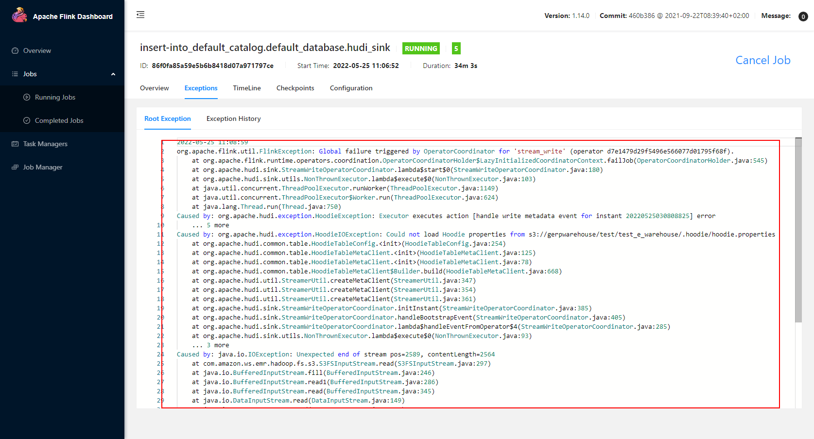 i had the same problem, i used flink 1.14.0 stream write to hudi 0.11.0  -- This is an automated message from the Apache Git Service. To respond to the message, please log on to GitHub and use the URL above to go to the specific comment. To unsubscribe, e-mail: [email protected] For queries about this service, please contact Infrastructure at: [email protected]