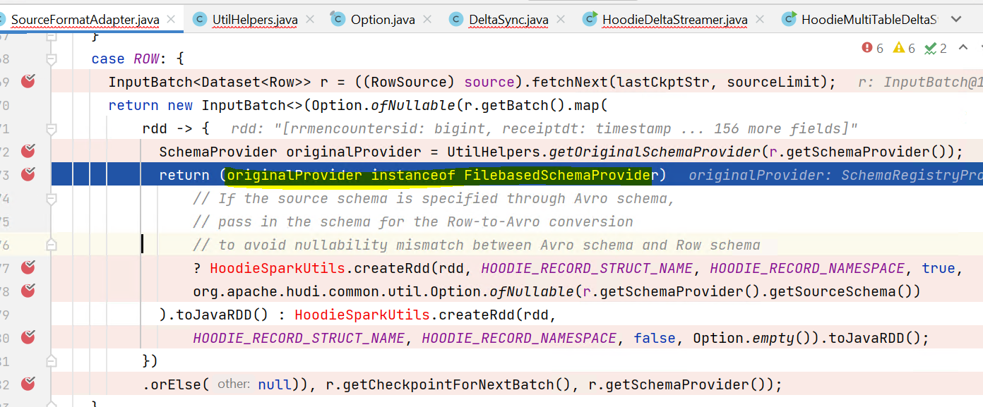 @nsivabalan Or I suspect here is the bug, it is working fine for FileBasedSchema provider but not with SchemaRegistryBasedSchema. Should it be handled here in SourceFormatAdapter.java method: fetchNewDataInAvroFormat() ? Not sure..  -- This is an automated message from the Apache Git Service. To respond to the message, please log on to GitHub and use the URL above to go to the specific comment. To unsubscribe, e-mail: [email protected] For queries about this service, please contact Infrastructure at: [email protected]
