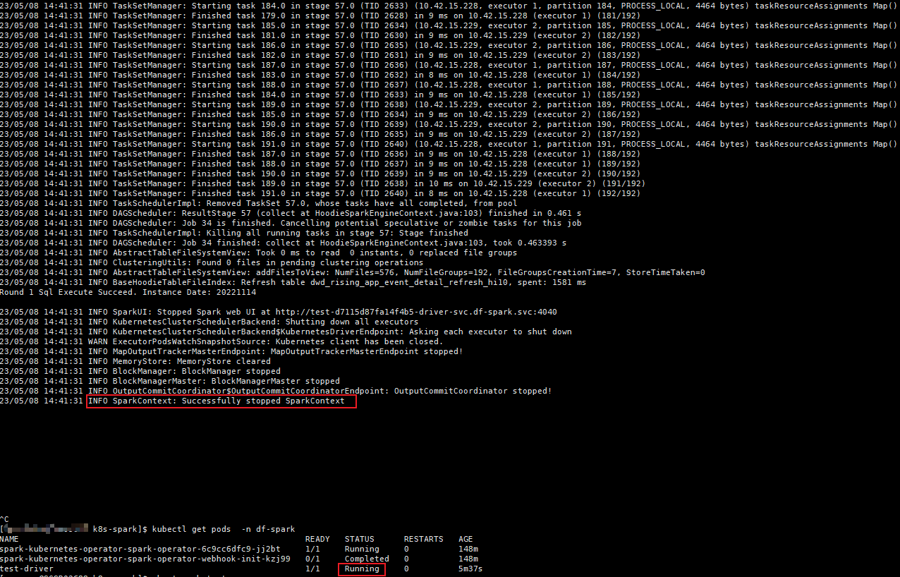 Hello, I have meet some error for **spark-on-k8s-operator**. My hudi version is 0.13,spark version is 3.3.2 I find the pod log show the task is Successfully,but pod status is still Running?  my sql setting is `set spark.sql.shuffle.partitions=600; set hoodie.insert.shuffle.parallelism=600; set hoodie.upsert.shuffle.parallelism=600; set hoodie.write.concurrency.mode=optimistic_concurrency_control; set hoodie.cleaner.policy.failed.writes=LAZY; set hoodie.write.lock.provider=org.apache.hudi.hive.transaction.lock.HiveMetastoreBasedLockProvider; set hoodie.write.lock.hivemetastore.database=zone_test; set hoodie.write.lock.hivemetastore.table=dwd_event_detail_refresh_hi5;` if my sql setting is only 'set spark.sql.shuffle.partitions=600; set hoodie.insert.shuffle.parallelism=600; set hoodie.upsert.shuffle.parallelism=600;' it can worker well. does hudi something settings conf can't use in k8s? -- This is an automated message from the Apache Git Service. To respond to the message, please log on to GitHub and use the URL above to go to the specific comment. To unsubscribe, e-mail: [email protected] For queries about this service, please contact Infrastructure at: [email protected]