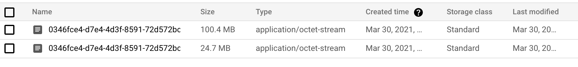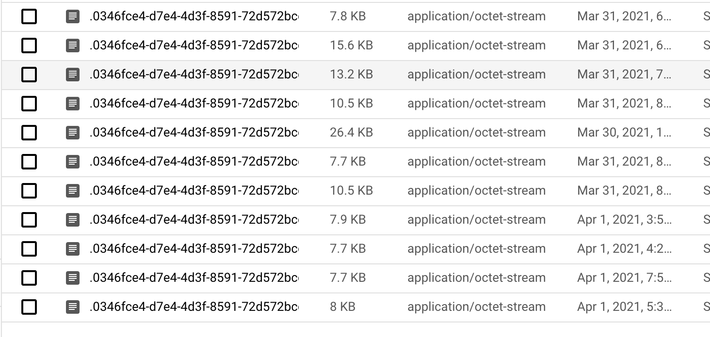 The first image shows the compacted parquet files, note that it was created