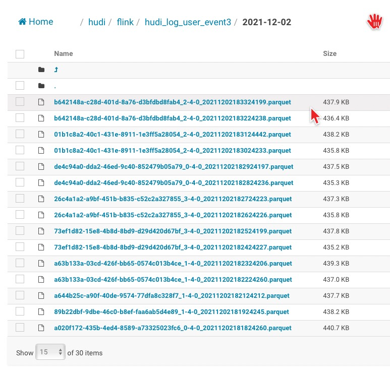 > The pipeline is right, there is a bucket assigner there which would try to assign records to small buckets, do you insert continuously and see the file size ? The cleaner may clean the old small files then. I started two task to consume same Kafka topic with different group id, sink to different Hudi table: 1: Flink 1.12.2 with Hudi 0.9 2: Flink 1.13.2 with latest Hudi version(Started at 05:49 PM for test) Two jobs pipeline are same, but the files under partition are different: Job one keep 13 files, and new data are merged into those files, and be merged into two files(because no much data) at second day. Job two just add new files, and there were more than 2000 files under every partition.   -- This is an automated message from the Apache Git Service. To respond to the message, please log on to GitHub and use the URL above to go to the specific comment. To unsubscribe, e-mail: [email protected] For queries about this service, please contact Infrastructure at: [email protected]