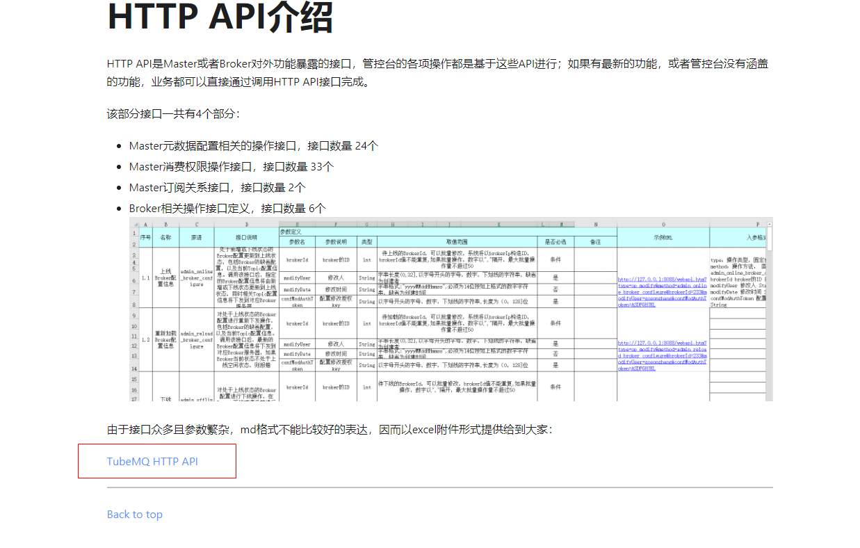### Description 获取HTTP API文档的链接打不开 问题地址:https://inlong.apache.org/zh-CN/docs/modules/tubemq/appendixfiles/http_access_api_definition_cn.xls  ### InLong Component InLong Website ### Are you willing to submit PR? - [ ] Yes, I am willing to submit a PR! ### Code of Conduct - [X] I agree to follow this project's [Code of Conduct](https://www.apache.org/foundation/policies/conduct) -- This is an automated message from the Apache Git Service. To respond to the message, please log on to GitHub and use the URL above to go to the specific comment. To unsubscribe, e-mail: [email protected] For queries about this service, please contact Infrastructure at: [email protected]