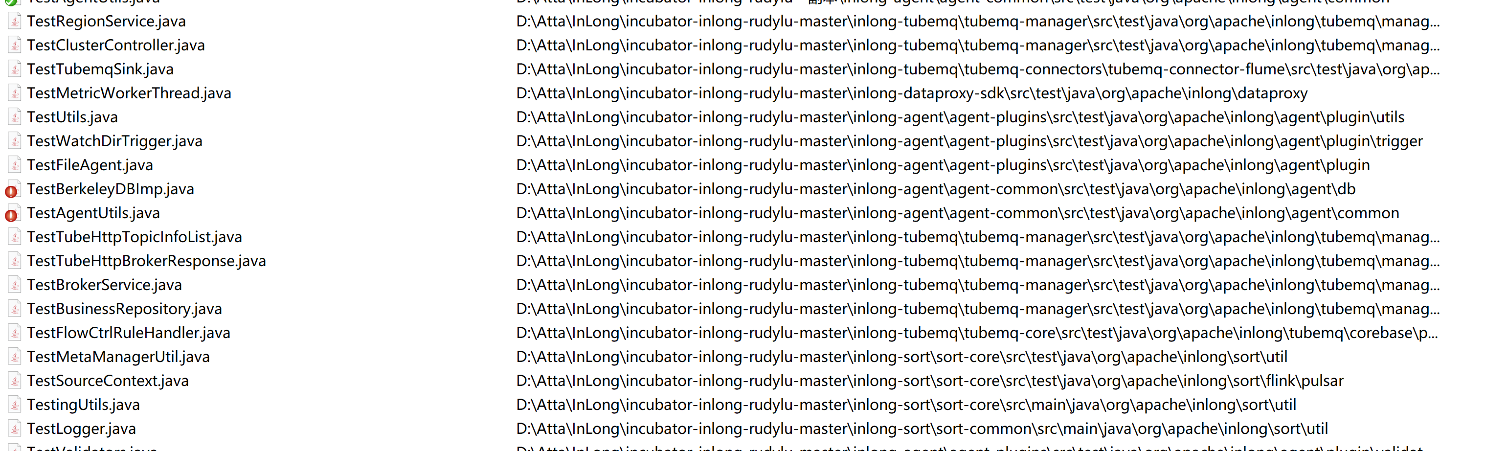 ########## File path: inlong-sort-standalone/sort-standalone-common/src/test/java/org/apache/inlong/sort/standalone/metrics/TestMetricListenerRunnable.java ########## @@ -0,0 +1,152 @@ +/** + * Licensed to the Apache Software Foundation (ASF) under one or more + * contributor license agreements. See the NOTICE file distributed with + * this work for additional information regarding copyright ownership. + * The ASF licenses this file to You under the Apache License, Version 2.0 + * (the "License"); you may not use this file except in compliance with + * the License. You may obtain a copy of the License at + * + * http://www.apache.org/licenses/LICENSE-2.0 + * + * Unless required by applicable law or agreed to in writing, software + * distributed under the License is distributed on an "AS IS" BASIS, + * WITHOUT WARRANTIES OR CONDITIONS OF ANY KIND, either express or implied. + * See the License for the specific language governing permissions and + * limitations under the License. + */ + +package org.apache.inlong.sort.standalone.metrics; + +import static org.junit.Assert.assertEquals; + +import java.util.ArrayList; +import java.util.List; +import java.util.Map; + +import org.apache.inlong.commons.config.metrics.MetricRegister; +import org.apache.inlong.commons.config.metrics.MetricUtils; +import org.apache.inlong.commons.config.metrics.MetricValue; +import org.junit.BeforeClass; +import org.junit.Test; + +/** + * + * TestMetricItemSetMBean + */ +public class TestMetricListenerRunnable { Review comment: "Test" is prefix of class name in history TestCase. It is same in hadoop and hive.   -- This is an automated message from the Apache Git Service. To respond to the message, please log on to GitHub and use the URL above to go to the specific comment. To unsubscribe, e-mail: [email protected] For queries about this service, please contact Infrastructure at: [email protected]