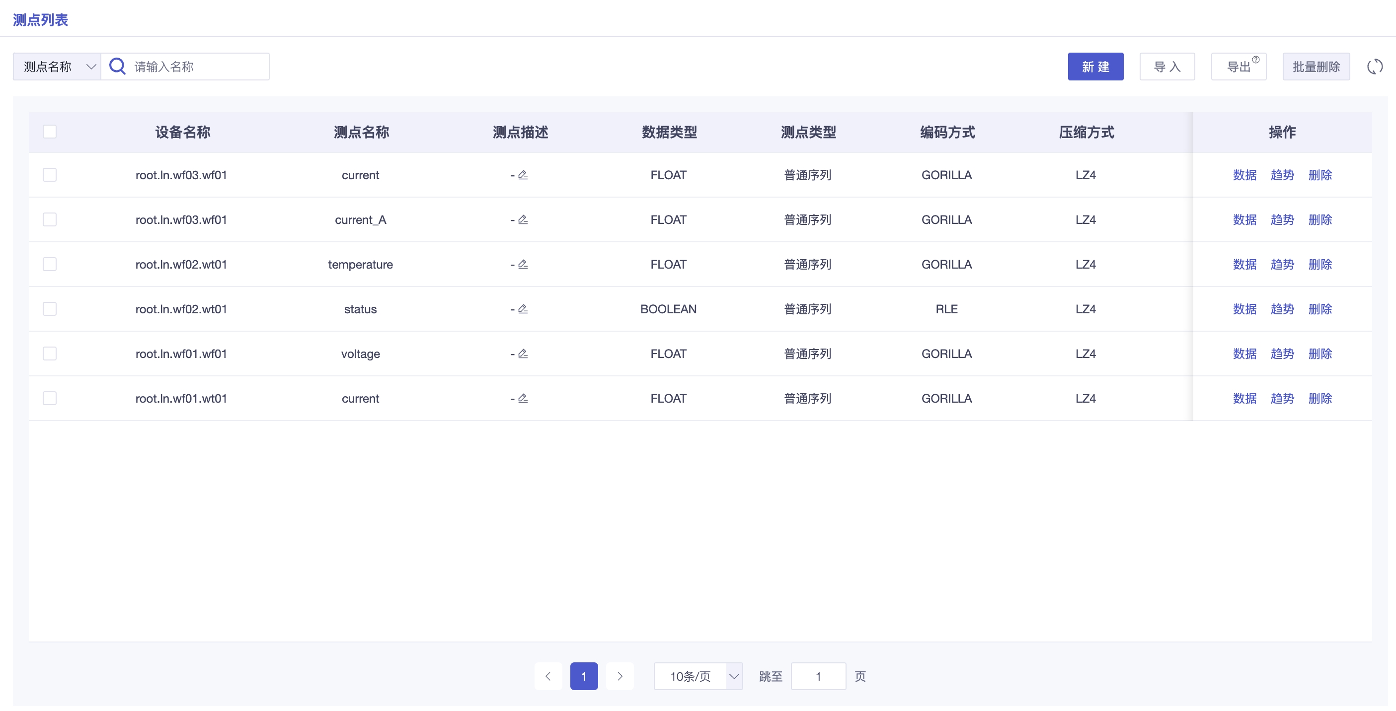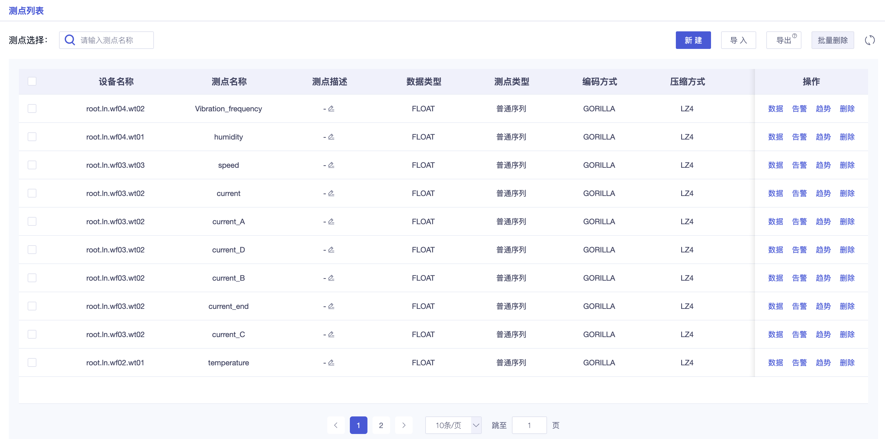 您可以通过界面直观查看、管理测点信息,支持直接查看实例中的所有测点,并查看测点的重要信息