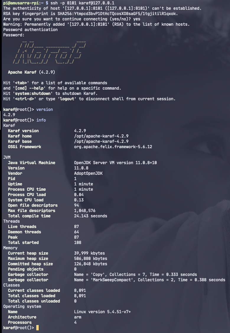 @skitt and @jbonofre I just installed the Apache Karaf image for ARM