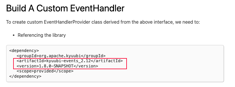- to fix typo in dependency reference in doc of custom event handler