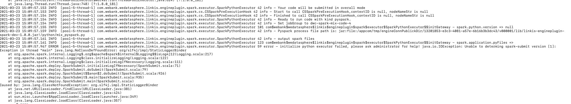 ### Search before asking - [X] I searched the [issues](https://github.com/apache/incubator-linkis/issues) and found no similar issues. ### Linkis Component linkis-commons ### What happened + What you expected to happen 运行Scripts的Mysql脚本报错\sql引擎报错 Mysql script running Scripts reports error\sql engine error  MYSQL Error Info: > com.webank.wedatasphere.linkis.orchestrator.ecm.exception.ECMPluginErrorException: errCode: 12003 ,desc: localhost:9101_0 Failed to async get EngineNode RMErrorException: errCode: 11006 ,desc: Failed to request external resourceClassCastException: org.json4s.JsonAST$JNothing$ cannot be cast to org.json4s.JsonAST$JString ,ip: localhost ,port: 9101 ,serviceKind: linkis-cg-linkismanager ,ip: localhost ,port: 9104 ,serviceKind: linkis-cg-entrance at com.webank.wedatasphere.linkis.orchestrator.ecm.ComputationEngineConnManager.getEngineNodeAskManager(ComputationEngineConnManager.scala:157) ~[linkis-orchestrator-ecm-plugin-1.0.2.jar:?] ### Relevent platform ` ### Reproduction script ` ### Anything else This question comes from the QA documentation of the Linkis community QA Link:https://docs.qq.com/doc/DSGZhdnpMV3lTUUxq ### Are you willing to submit a PR? - [ ] Yes I am willing to submit a PR! -- This is an automated message from the Apache Git Service. To respond to the message, please log on to GitHub and use the URL above to go to the specific comment. To unsubscribe, e-mail: [email protected] For queries about this service, please contact Infrastructure at: [email protected] --------------------------------------------------------------------- To unsubscribe, e-mail: [email protected] For additional commands, e-mail: [email protected]