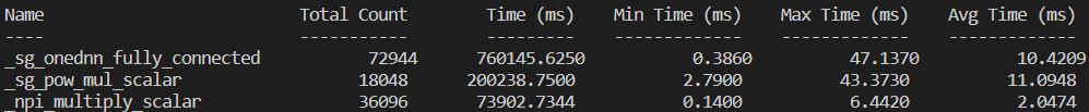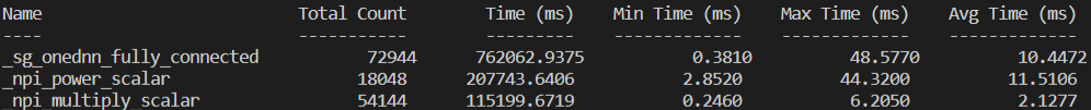 New performance numbers (after adding oneDNN support for npi_power_scalar operator):  with fuse:  As one can see, not only total execution time for npi_multiply_scalar has shreded but also the average what suggests that worse cases have been merged. -- This is an automated message from the Apache Git Service. To respond to the message, please log on to GitHub and use the URL above to go to the specific comment. To unsubscribe, e-mail: [email protected] For queries about this service, please contact Infrastructure at: [email protected]