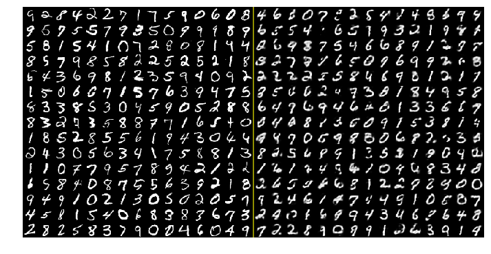 yifeim commented on issue #11268: A binary RBM example URL: https://github.com/apache/incubator-mxnet/pull/11268#issuecomment-412016617  The comparison at the end of 130 epochs. I think it looks very nice!