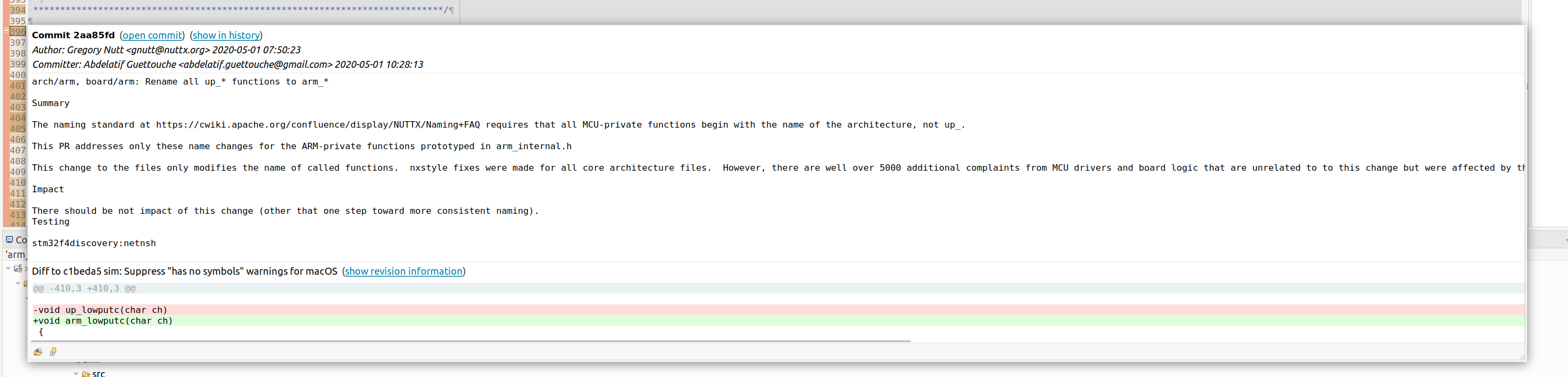 > Is it good to name the chip specific function with arm_ prefix? It suppose that arm_ is reserved for arm arch common code. @xiaoxiang781216 No. It is not a good name. I agree with you. However a set of sweeping changes were made at some point. And most all the drivers use arm_ naming now. I would prefer the the root arch prefix (stm32, imxrt) but I do not have the time to fix it all at the moment.   The first commit in this PR just makes it consistent. Do you want me to drop the 1st commit? -- This is an automated message from the Apache Git Service. To respond to the message, please log on to GitHub and use the URL above to go to the specific comment. To unsubscribe, e-mail: [email protected] For queries about this service, please contact Infrastructure at: [email protected]