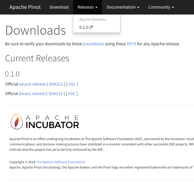 snleee opened a new pull request #7: Adding download page along with the pointers for 0.1.0 release URL: https://github.com/apache/incubator-pinot-site/pull/7