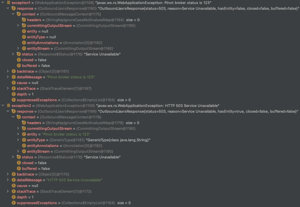 - throw new WebApplicationException(String.format("Pinot broker status is