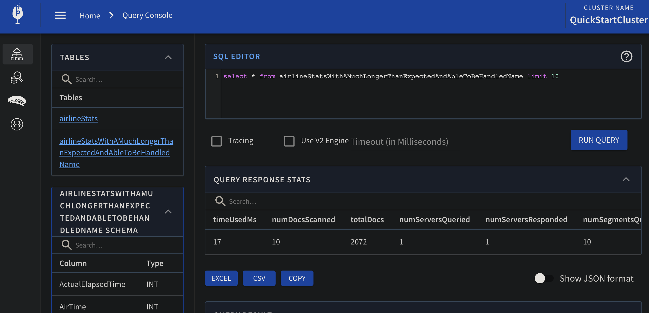 This is a `ui` fixes and closes https://github.com/apache/pinot/issues/10518 This makes the left panel in the query console have a separate line for the search bar. All titles, table names, and column names now use wordbreak instead of overflowing or scrolling before  after  -- This is an automated message from the Apache Git Service. To respond to the message, please log on to GitHub and use the URL above to go to the specific comment. To unsubscribe, e-mail: [email protected] For queries about this service, please contact Infrastructure at: [email protected] --------------------------------------------------------------------- To unsubscribe, e-mail: [email protected] For additional commands, e-mail: [email protected]