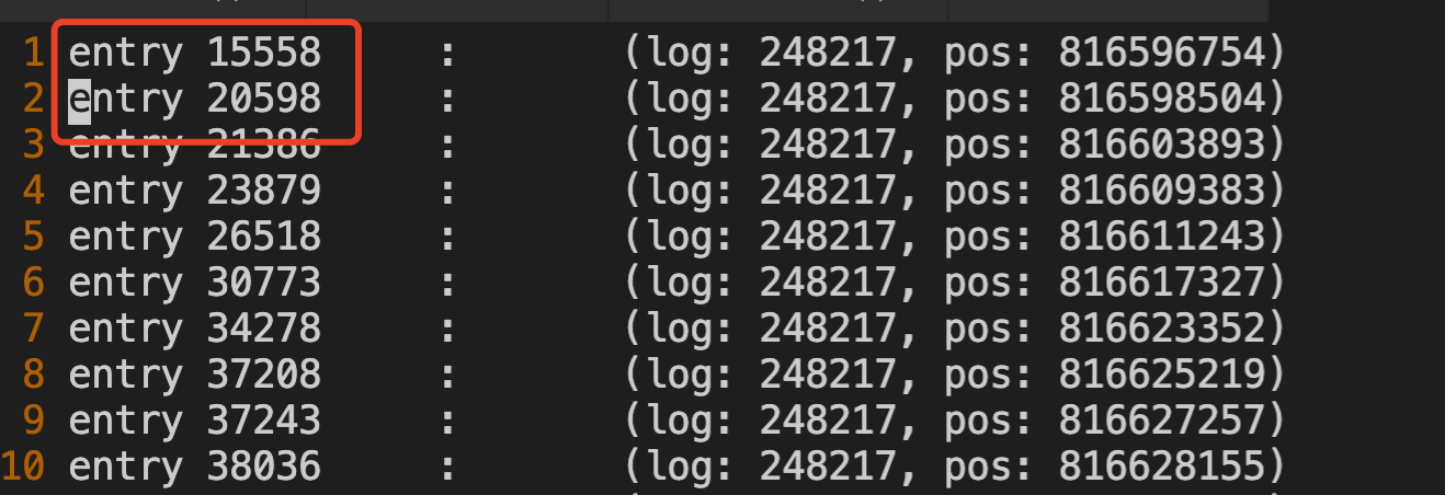 Error reading entries at 15759573:15389 : No such entry, Read Type Normal -