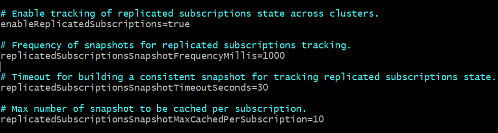 **Describe the bug** I have Geo replicated Pulsar clusters: Cluster-A and Cluster-B. Consumer 1 subscribes to Cluster-A, and Consumer 2 subscribes to Cluster-B. Consumer 1 and Consumer 2 have the same subscription name and use the "Failover" mode. When I start consumer 1 first, consume a message and ACK. Consumer 2 is started after 30 seconds, and it is found that consumer 2 has repeatedly consumed messages. Both Consumer 1 and Consumer 2 have replicateSubscriptionState set to true. Configurations related to subscription replication are default values. as follows:  **To Reproduce** 1. Start consumer 1. 2. Start a producer to send messages to Cluster A. 3. See consumer 1 consume the message, then wait 30 seconds. 4. Start consumer 2. **Expected behavior** Consumer 2 should not repeatedly consume messages that Consumer 1 has acked. **Screenshots** If applicable, add screenshots to help explain your problem. **Desktop (please complete the following information):** - OS: Ubuntu 20.04.3 LTS **Additional context** - Pulsar version: 2.8.1 -- This is an automated message from the Apache Git Service. To respond to the message, please log on to GitHub and use the URL above to go to the specific comment. To unsubscribe, e-mail: [email protected] For queries about this service, please contact Infrastructure at: [email protected]