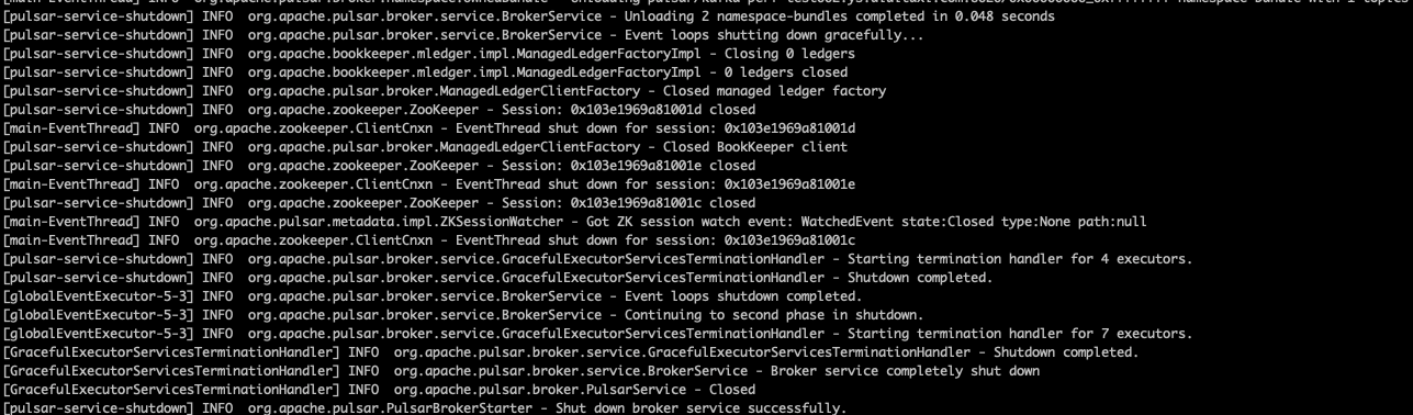 Fixes #15625 ### Motivation There's an issue reported about problems in broker shutdown. This PR will help print log fully when we shut down broker; After this PR fixed, the broker shutdown log printed as follow:  ### Modifications We have set `log4j.shutdownHookEnabled=false`, so we need add finally `LogManager.shutdown()` invoke in `PulsarBrokerStarter` and `PulsarStandaloneStarter` Runtime ShutdownHook. ### Documentation - [X] `no-need-doc` -- This is an automated message from the Apache Git Service. To respond to the message, please log on to GitHub and use the URL above to go to the specific comment. To unsubscribe, e-mail: [email protected] For queries about this service, please contact Infrastructure at: [email protected]