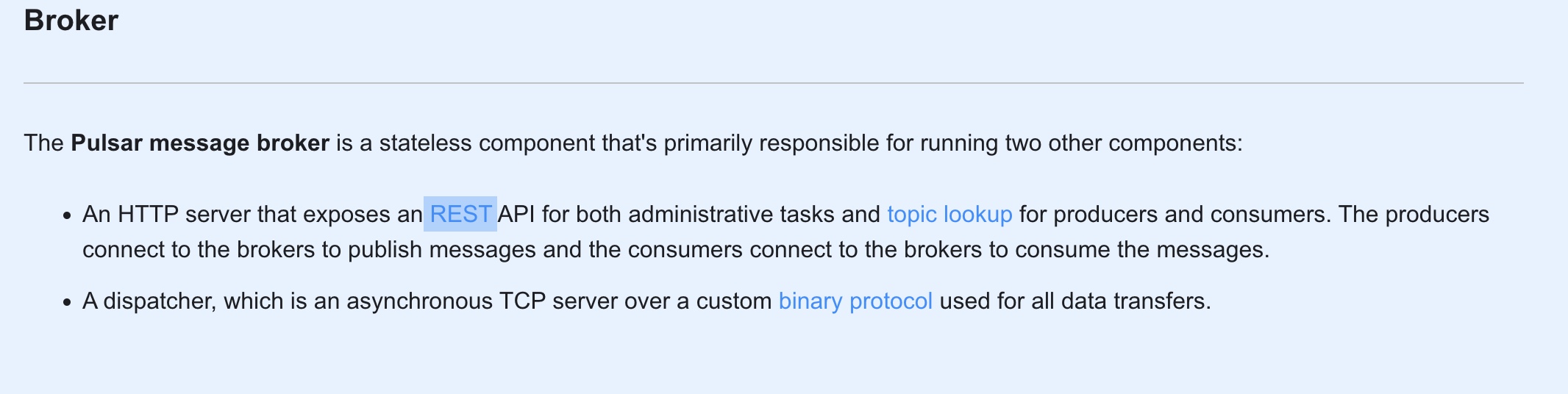 +The **Pulsar message broker** is a stateless component that's primarily