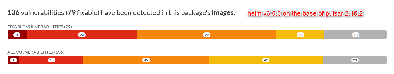 - v3.0.0 with pulsar 2.10.2 **136 vulnerabilities (79 fixable) have been
