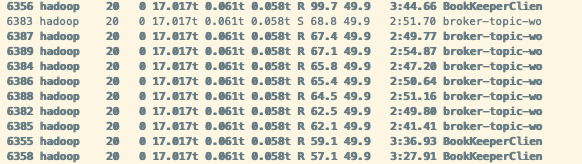 ### Search before asking - [X] I searched in the [issues](https://github.com/apache/pulsar/issues) and found nothing similar. ### Version server and client version: pulsar-2.9.4 ### Minimal reproduce step do txn produce and txn consume on a 200-partition topic by pulsar-perf. The throughput is 10MB/s, batchSize is 10, subscriptionType is exclusive. It is a tailing read, consuming the latest message produce config is :`-txn -nmt 1000 -time 0 -s 1024 -i 60 -bm 10 -b 1000 -bb 4194304 -r 10000 -mk random -threads 3`; consume config is : `-txn -nmt 2000 -time 0 -i 60 -s sub_test_txn_p200 -ss sub_test_txn_p200 -sp Latest -ioThreads 1 -n 1` ### What did you expect to see? The cpu usage should not be so high when it is exclusive subscription, tailing read and txn consume. Actually the tailing read should not consume more resource than catchup read. ### What did you see instead? 1. when it is tailing read and exclusive subscription and txn consume, the cpu usage is 80%. But when it turn to catchup read, the cpu usage is 45%.  2. Throughput would not influence the cpu usage, but if topic have more partition, the cpu usage is higher. I add some log in code and have found the cpu is consumed in "broker-topic-workers", which is mostly do PersistentDispatcherSingleActiveConsumer#readEntriesComplete and PersistentDispatcherSingleActiveConsumer#dispatchEntriesToConsumer.  I also add a metric of thread pool "broker-topic-workers", and found that when do catchup read 2. Throughput would not influence the cpu usage, but if topic have more partition, the cpu usage is higher. 3. I add some log in code and have found the cpu is consumed in "broker-topic-workers", which is mostly do PersistentDispatcherSingleActiveConsumer#readEntriesComplete and PersistentDispatcherSingleActiveConsumer#dispatchEntriesToConsumer.  4. I also add a metric of thread pool "broker-topic-workers", and found that when do catchup read. the completed task in thread pool is total 150K * 8 thread = 1200K/s, while the read throughput is 10K message/s. There are too many task in this thread pool.   ### Anything else? Although tested in 2.9.4, I guess this problem may also occur in master branch. ### Are you willing to submit a PR? - [ ] I'm willing to submit a PR! -- This is an automated message from the Apache Git Service. To respond to the message, please log on to GitHub and use the URL above to go to the specific comment. To unsubscribe, e-mail: [email protected] For queries about this service, please contact Infrastructure at: [email protected]