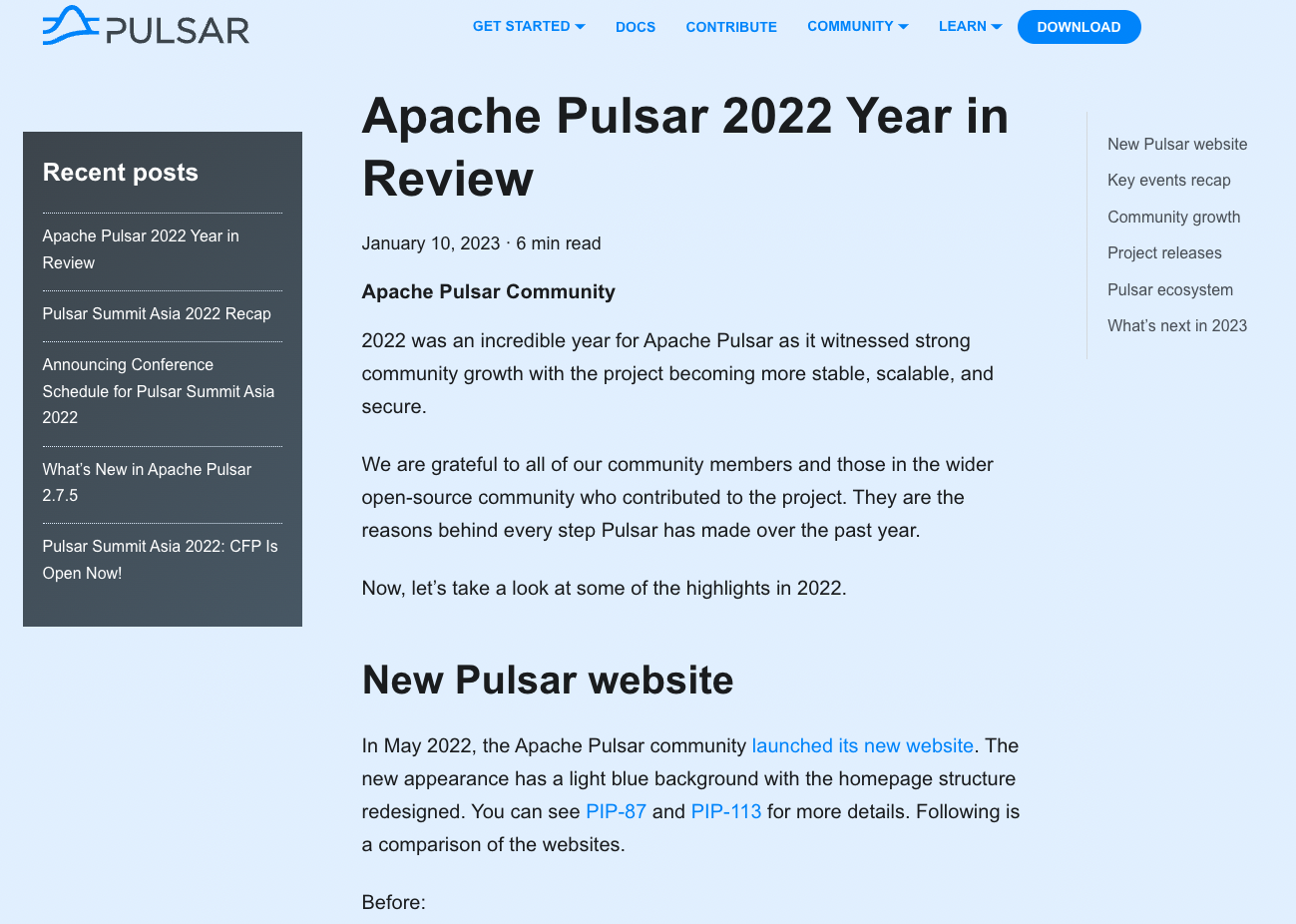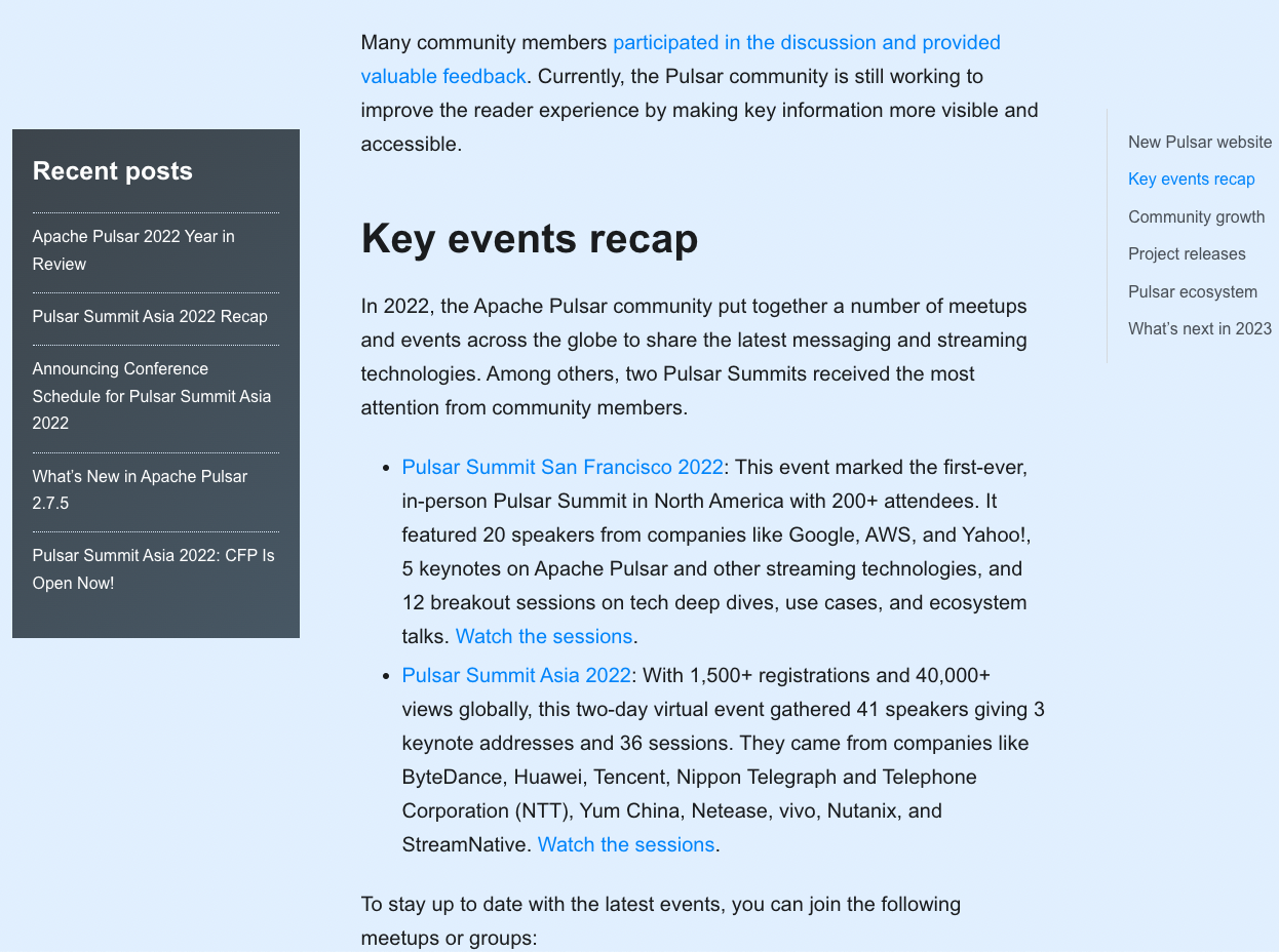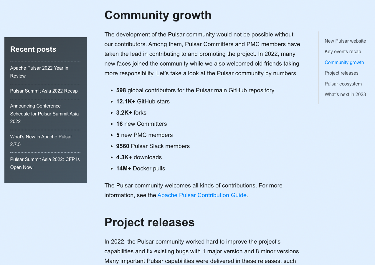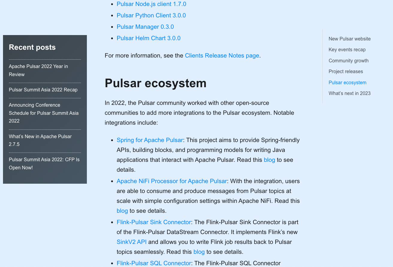 Add the Pulsar 2022 Year in Review blog. Previews:      -- This is an automated message from the Apache Git Service. To respond to the message, please log on to GitHub and use the URL above to go to the specific comment. To unsubscribe, e-mail: [email protected] For queries about this service, please contact Infrastructure at: [email protected]
