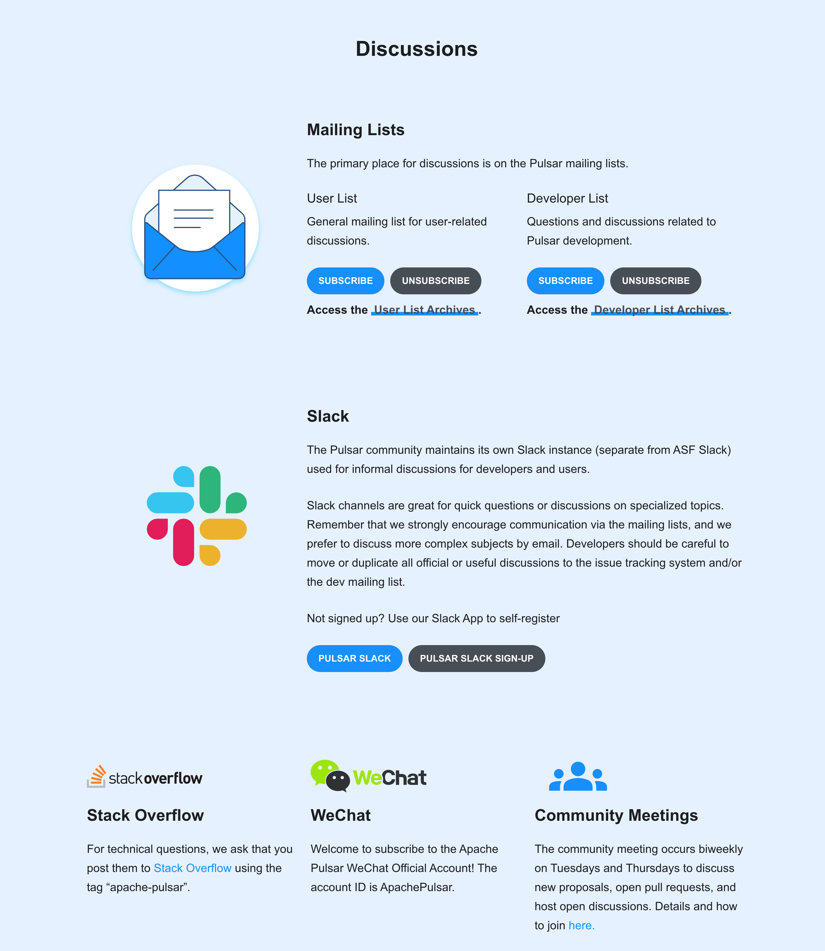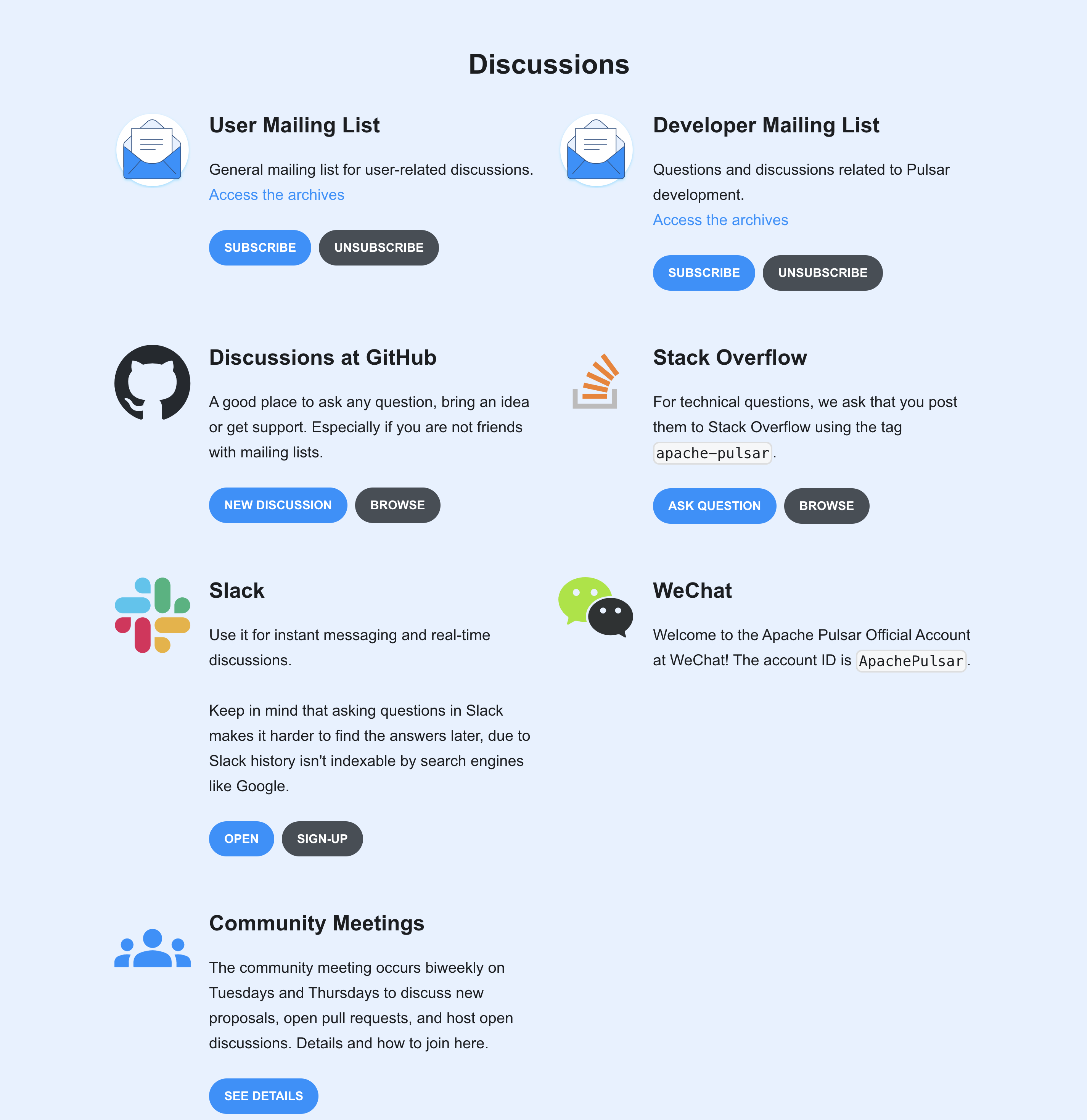 ### Documentation <!-- DO NOT REMOVE THIS SECTION. CHECK THE PROPER BOX ONLY. --> - [ ] `doc` <!-- Your PR contains doc changes. Please attach the local preview screenshots (run `./preview.sh` at root path) to your PR description, or else your PR might not get merged. --> - [ ] `doc-required` <!-- Your PR changes impact docs and you will update later --> - [x] `doc-not-needed` <!-- Your PR changes do not impact docs --> - [ ] `doc-complete` <!-- Docs have been already added --> ## Changes - Refactored discussions component. If you need to add a new "DiscussionPlatform", you can just add a new JS, instead of deal with HTML and Tailwind. https://github.com/tealtools/pulsar-site/blob/5aacd1fddffce24c00ebc0529396f74c5f9529ec/src/pages/community/DiscussionPlatforms.tsx#L8 - Adjusted styles a bit. - Extracted Slider at the community page to a separate component. - Removed anchors-related redundant logic at the community page. In Docusaurus anchors work as expected after build. - Changed Slack description. - Added [.editorconfig](https://editorconfig.org/). --- ### Before  ### After  Ping @tisonkun -- This is an automated message from the Apache Git Service. To respond to the message, please log on to GitHub and use the URL above to go to the specific comment. To unsubscribe, e-mail: [email protected] For queries about this service, please contact Infrastructure at: [email protected]