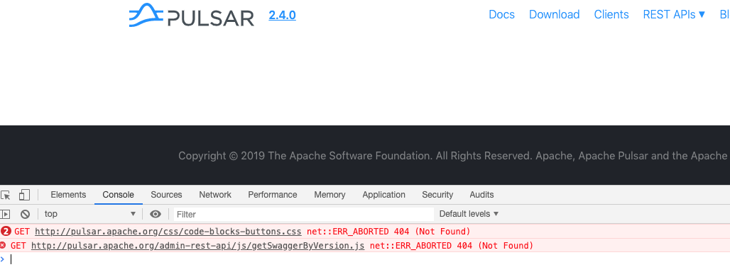 tuteng opened a new pull request #5076: [website]The website cannot get the swagger version file URL: https://github.com/apache/pulsar/pull/5076 ### Motivation After multiple versions of rest API are currently supported, a prefix is added to the route of the online environment when it is displayed. resulting in the js file not being available.  ### Modifications * Change js file search to a relative path ### Verifying this change Click http://pulsar.apache.org/admin-rest-api/js/getSwaggerByVersion.js 404 not found Click http://pulsar.apache.org/admin-rest-api/../js/getSwaggerByVersion.js OK