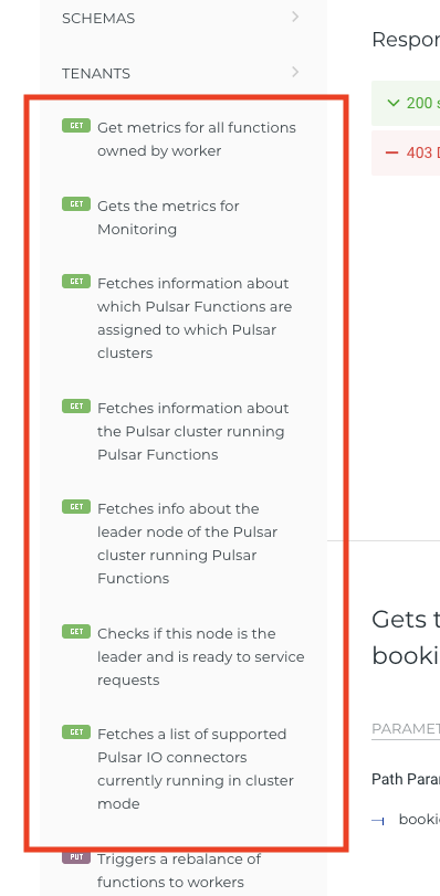 There has some request example are not in any of a group. https://pulsar.apache.org/admin-rest-api/?version=master&apiversion=v2  ---------------------------------------------------------------- This is an automated message from the Apache Git Service. To respond to the message, please log on to GitHub and use the URL above to go to the specific comment. For queries about this service, please contact Infrastructure at: [email protected]