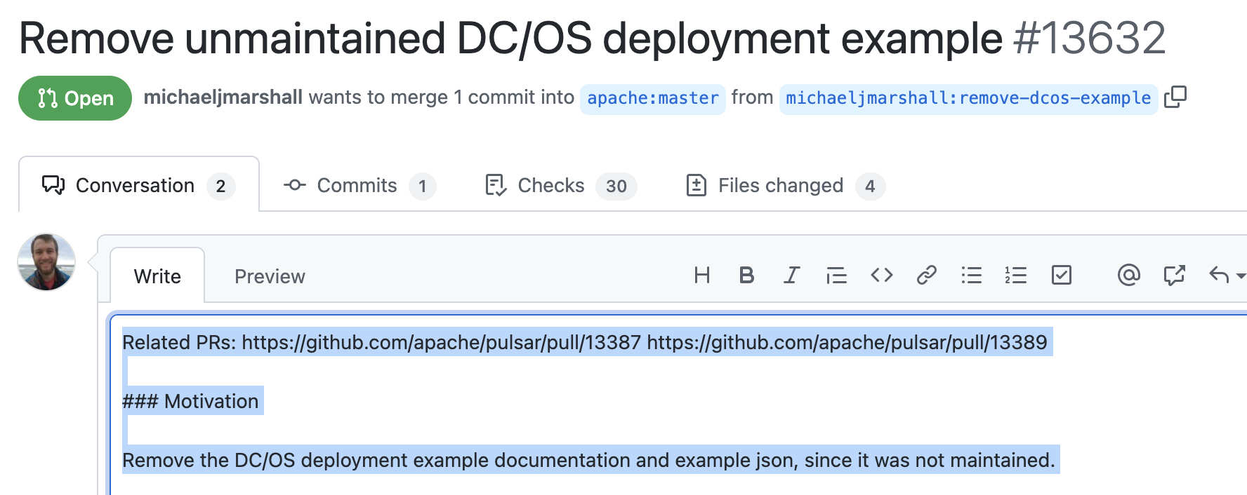 > Hi, just a tip for new committers. When you merge a PR, it's better to copy and paste the PR description like > >  > >  > > Otherwise, the commit log would only contain all the single commits like [53ad936](https://github.com/apache/pulsar/commit/53ad936b28035a7ae81e80c12e924b3f03a573e9) > > See a correct commit like: [40ac793](https://github.com/apache/pulsar/commit/40ac7934ed567b2b9f16dbd7f937f7973dcddc21) Thank you, I haven't known that before, sorry for my fault. -- This is an automated message from the Apache Git Service. To respond to the message, please log on to GitHub and use the URL above to go to the specific comment. To unsubscribe, e-mail: [email protected] For queries about this service, please contact Infrastructure at: [email protected]