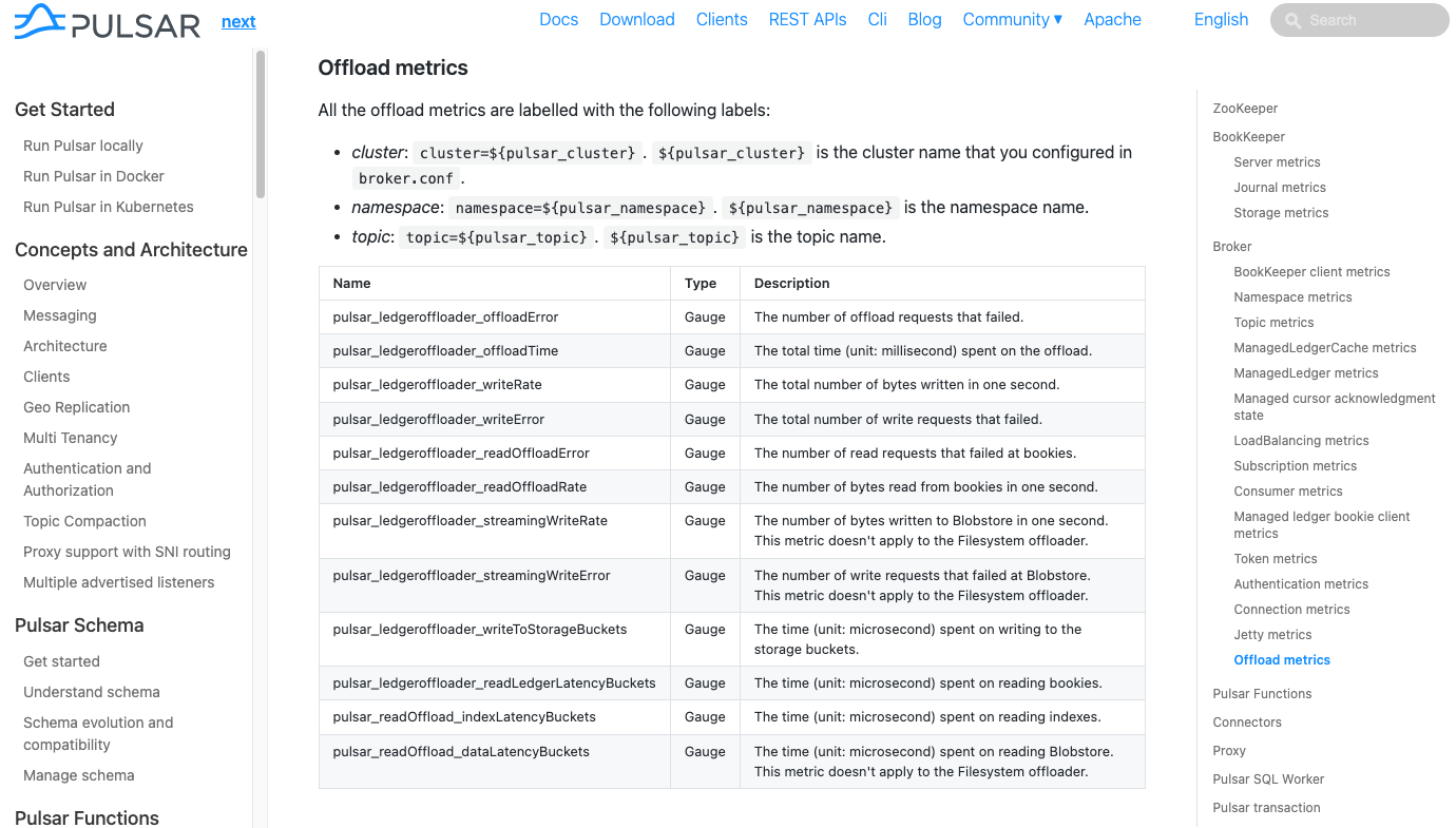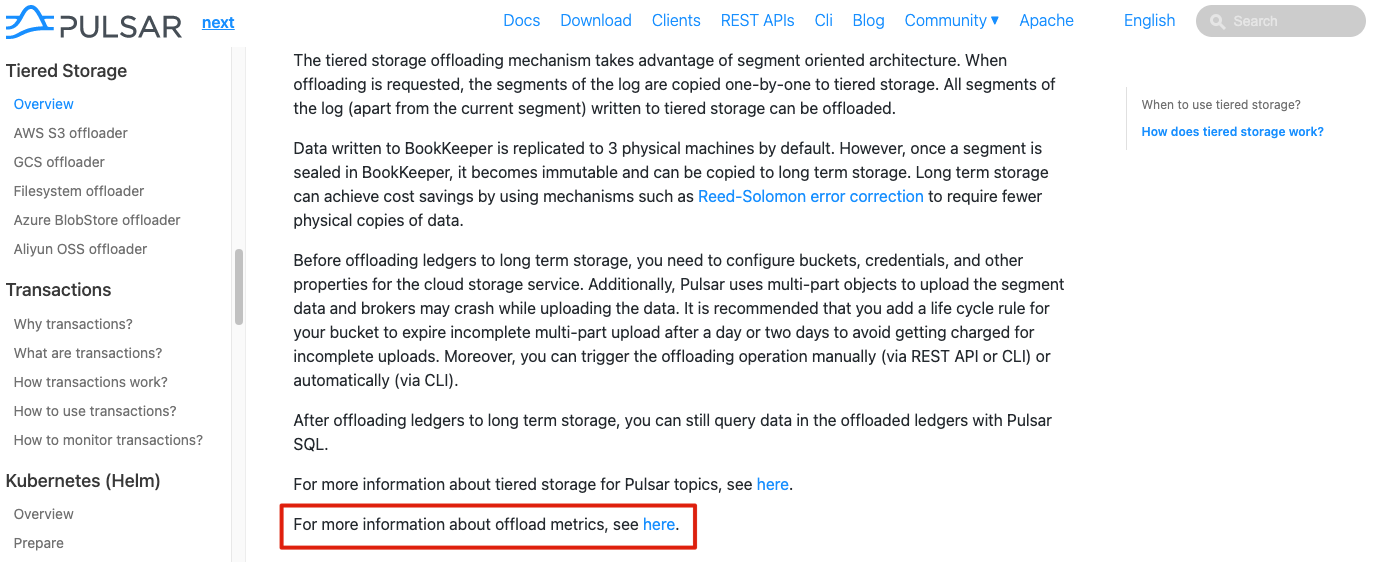 2. In the Tiered Storage chapter, add reference for offload metrics and fix