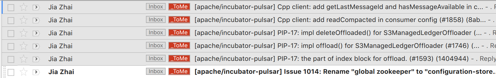 sijie commented on issue #1861: Cpp client: add getLastMessageId and hasMessageAvailable in consmer and reader URL: https://github.com/apache/incubator-pulsar/pull/1861#issuecomment-398947171 Sorry about that. I think we are @ the wrong github id. We will try to avoid it next time. - Sijie On Wed, Jun 20, 2018 at 5:33 PM Ivan Kozik <[email protected]> wrote: > FYI github emails me every time a commit message contains @ivan > <https://github.com/ivan> > > [image: screenshot_2018-06-21_00-32-20] > <https://user-images.githubusercontent.com/4458/41691533-9764d31e-74ea-11e8-82af-6575f78bc23c.png> > > — > You are receiving this because you modified the open/close state. > Reply to this email directly, view it on GitHub > <https://github.com/apache/incubator-pulsar/pull/1861#issuecomment-398939474>, > or mute the thread > <https://github.com/notifications/unsubscribe-auth/ABKVR6wmQEg19S_ShtGhnGfEchA-0nnKks5t-unAgaJpZM4USsGt> > . >