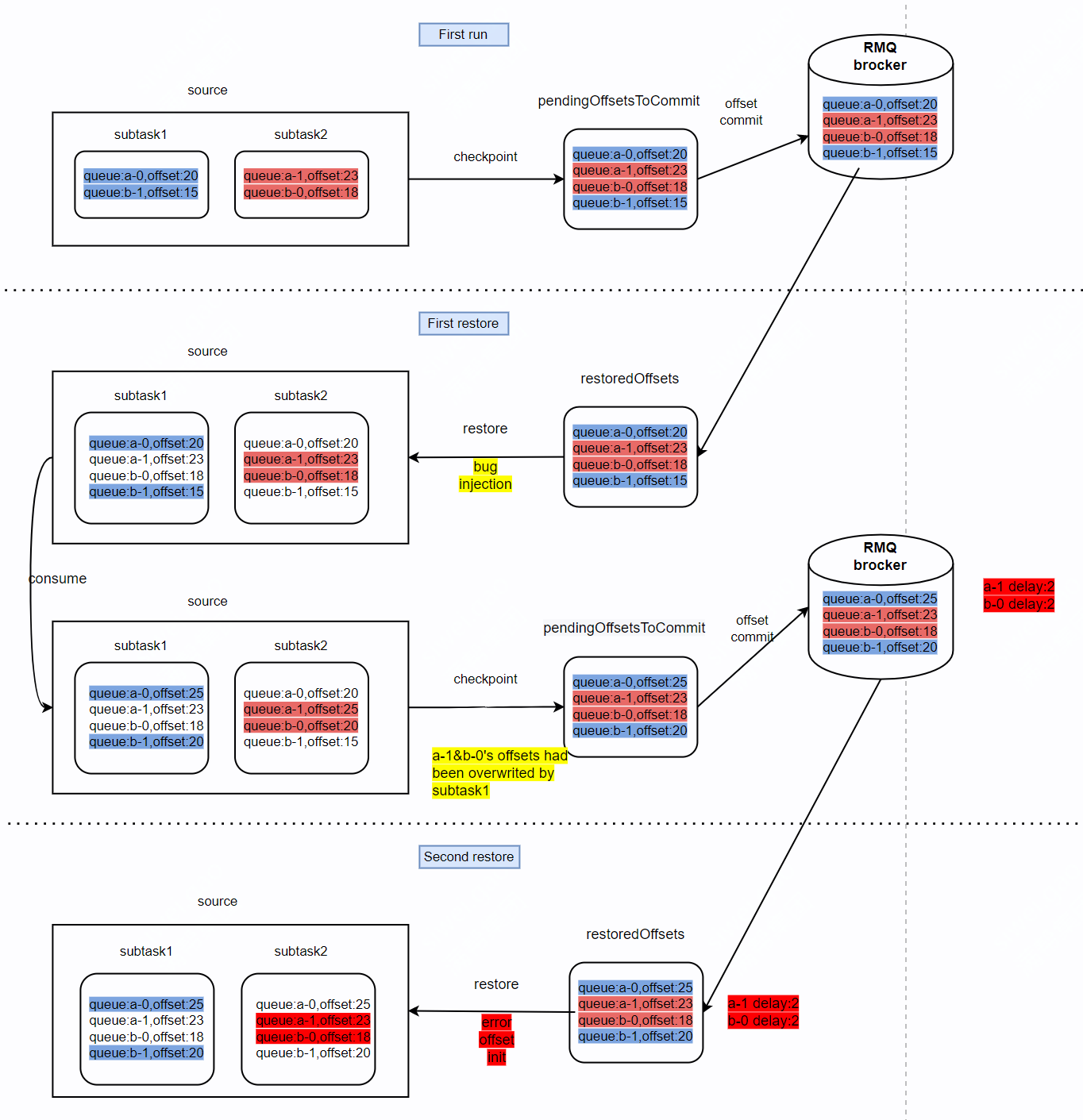 `initOffsetTableFromRestoredOffsets` in RocketMQSourceFunction. If job restarts from checkpoint .The whole mqs would be set to each subtask's offsetTable. The following pic shows the bug.  I'm testing for this fixing.Please assignee this issue to me. @SteNicholas tks -- This is an automated message from the Apache Git Service. To respond to the message, please log on to GitHub and use the URL above to go to the specific comment. To unsubscribe, e-mail: [email protected] For queries about this service, please contact Infrastructure at: [email protected]