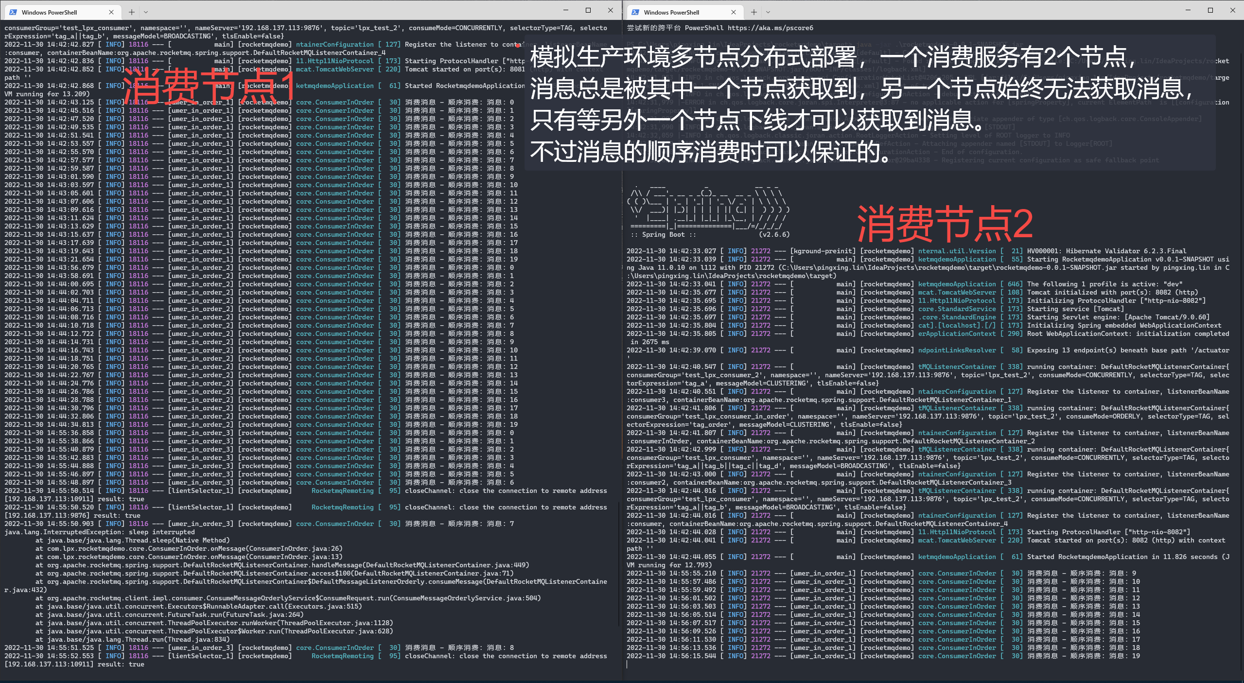 消费模式是这样的 ``` @RocketMQMessageListener(topic = MyProducer.TOPIC_NAME, consumerGroup = MyProducer.CONSUMER_GROUP_IN_ORDER, messageModel = MessageModel.CLUSTERING, consumeMode = ConsumeMode.ORDERLY, maxReconsumeTimes = 3, // 重试三次 selectorExpression = "tag_order") ``` -- This is an automated message from the Apache Git Service. To respond to the message, please log on to GitHub and use the URL above to go to the specific comment. To unsubscribe, e-mail: [email protected] For queries about this service, please contact Infrastructure at: [email protected]