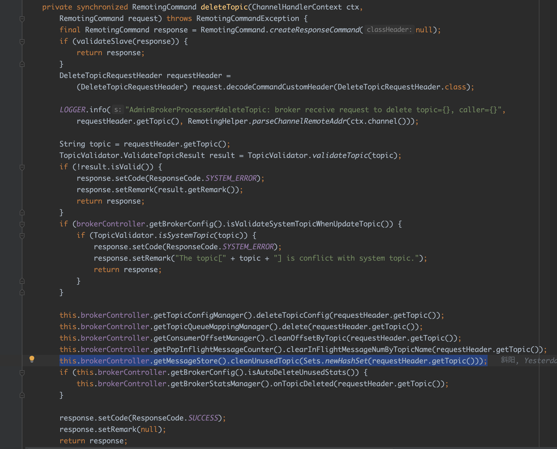 "delete topic" is a remoting APIļ¼"clean unused topic" is a store API -- This is an automated message from the Apache Git Service. To respond to the message, please log on to GitHub and use the URL above to go to the specific comment. To unsubscribe, e-mail: [email protected] For queries about this service, please contact Infrastructure at: [email protected]