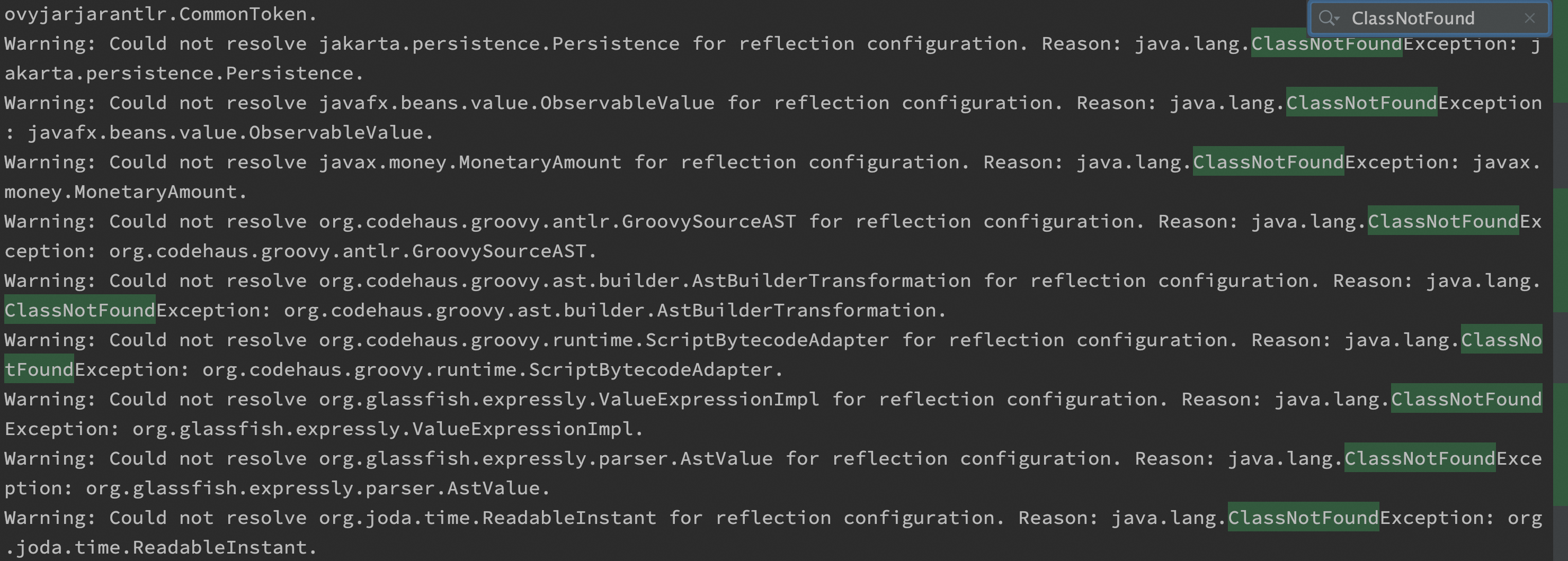 yes, there are a lot of relevant ClassNotFound warning logs when I use `mvn