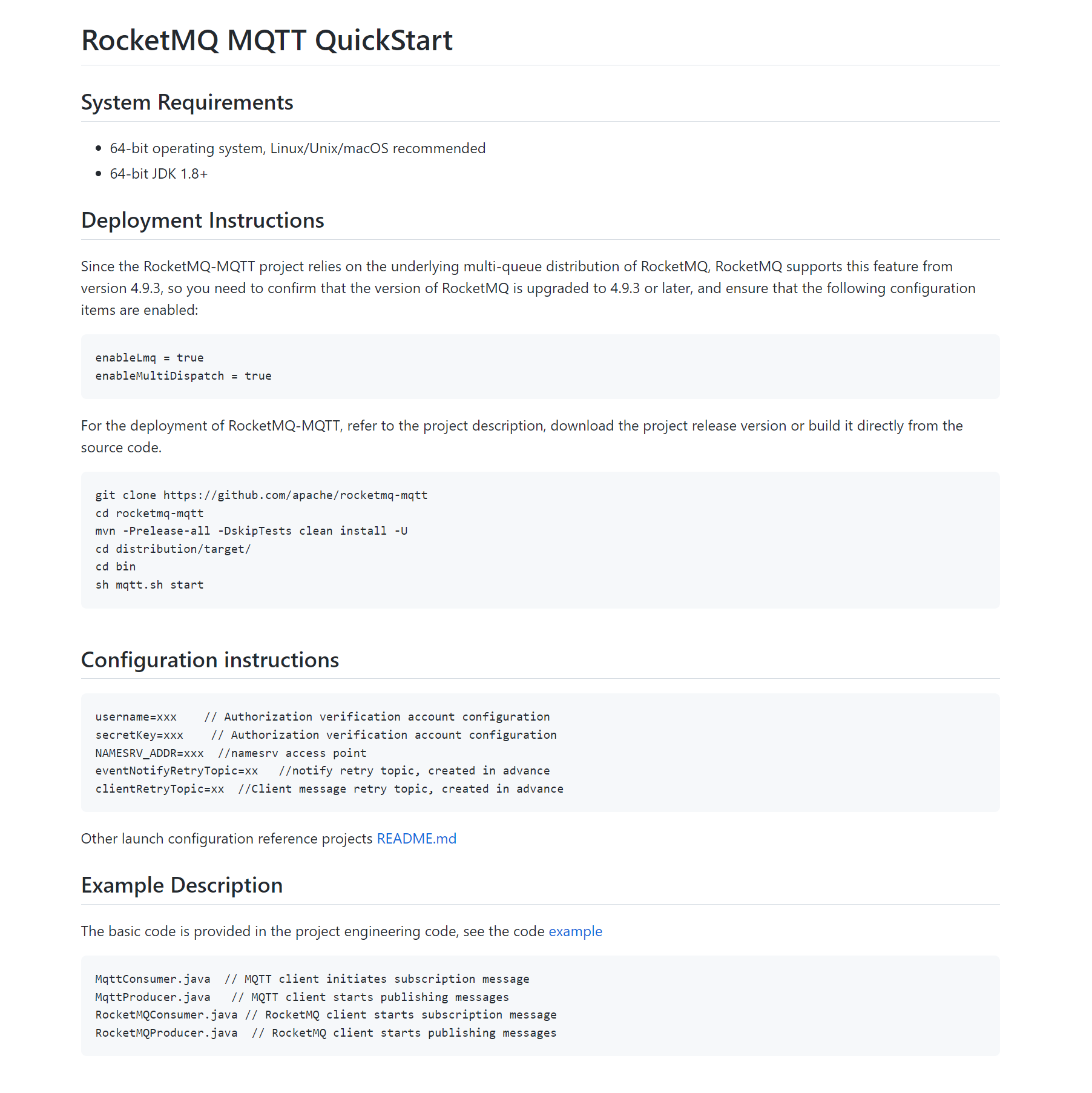 Please do not create a Pull Request without creating an issue first. ## What is the purpose of the change close #489 ## Brief changelog - Format 34RocketMQMQTTQuickStart.md cn and en document  ## Verifying this change XXXX Follow this checklist to help us incorporate your contribution quickly and easily: - [x] Make sure there is a Github issue filed for the change (usually before you start working on it). Trivial changes like typos do not require a Github issue. Your pull request should address just this issue, without pulling in other changes - one PR resolves one issue. - [ ] Format the pull request title like `[ISSUE #123] Fix UnknownException when host config not exist`. Each commit in the pull request should have a meaningful subject line and body. - [ ] Write a pull request description that is detailed enough to understand what the pull request does, how, and why. - [ ] Write necessary unit-test to verify your logic correction, more mock a little better when cross module dependency exist. If the new feature or significant change is committed, please remember to add integration-test in [test module](https://github.com/apache/rocketmq/tree/master/test). - [ ] Run `mvn -B clean apache-rat:check findbugs:findbugs checkstyle:checkstyle` to make sure basic checks pass. Run `mvn clean install -DskipITs` to make sure unit-test pass. Run `mvn clean test-compile failsafe:integration-test` to make sure integration-test pass. - [ ] If this contribution is large, please file an [Apache Individual Contributor License Agreement](http://www.apache.org/licenses/#clas). -- This is an automated message from the Apache Git Service. To respond to the message, please log on to GitHub and use the URL above to go to the specific comment. To unsubscribe, e-mail: [email protected] For queries about this service, please contact Infrastructure at: [email protected]
