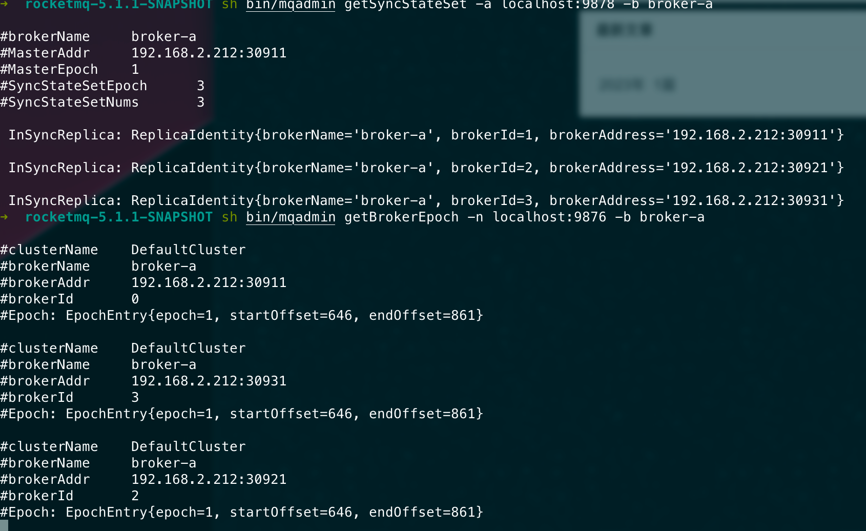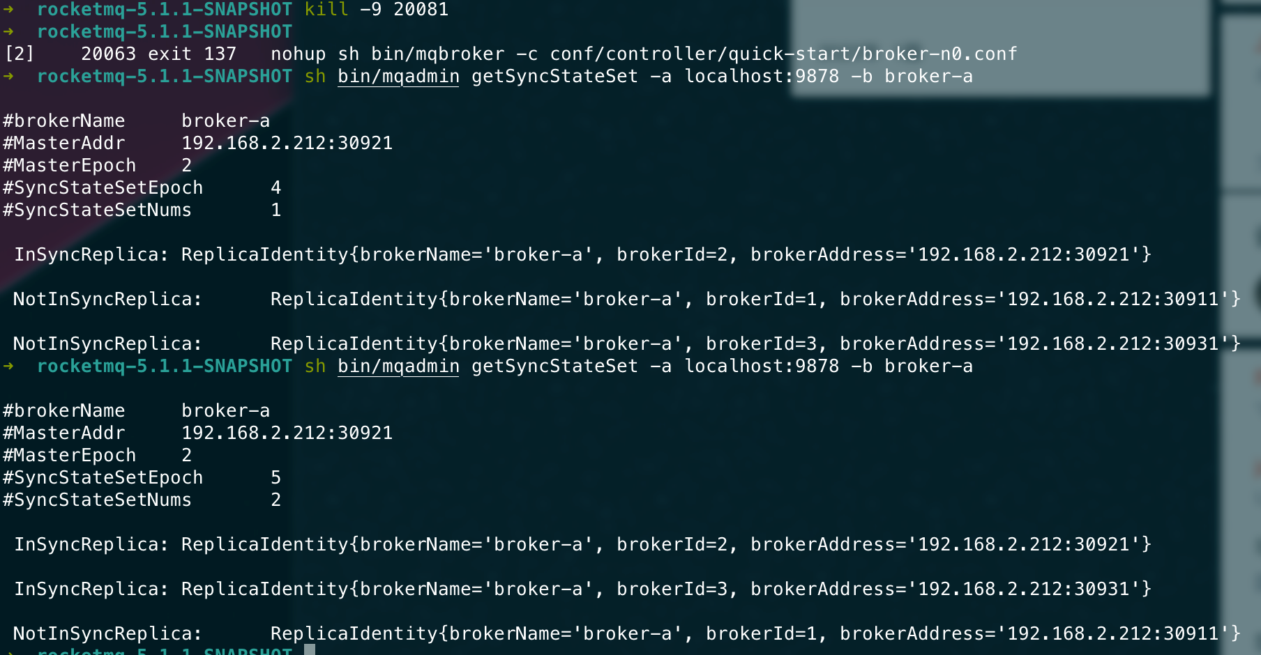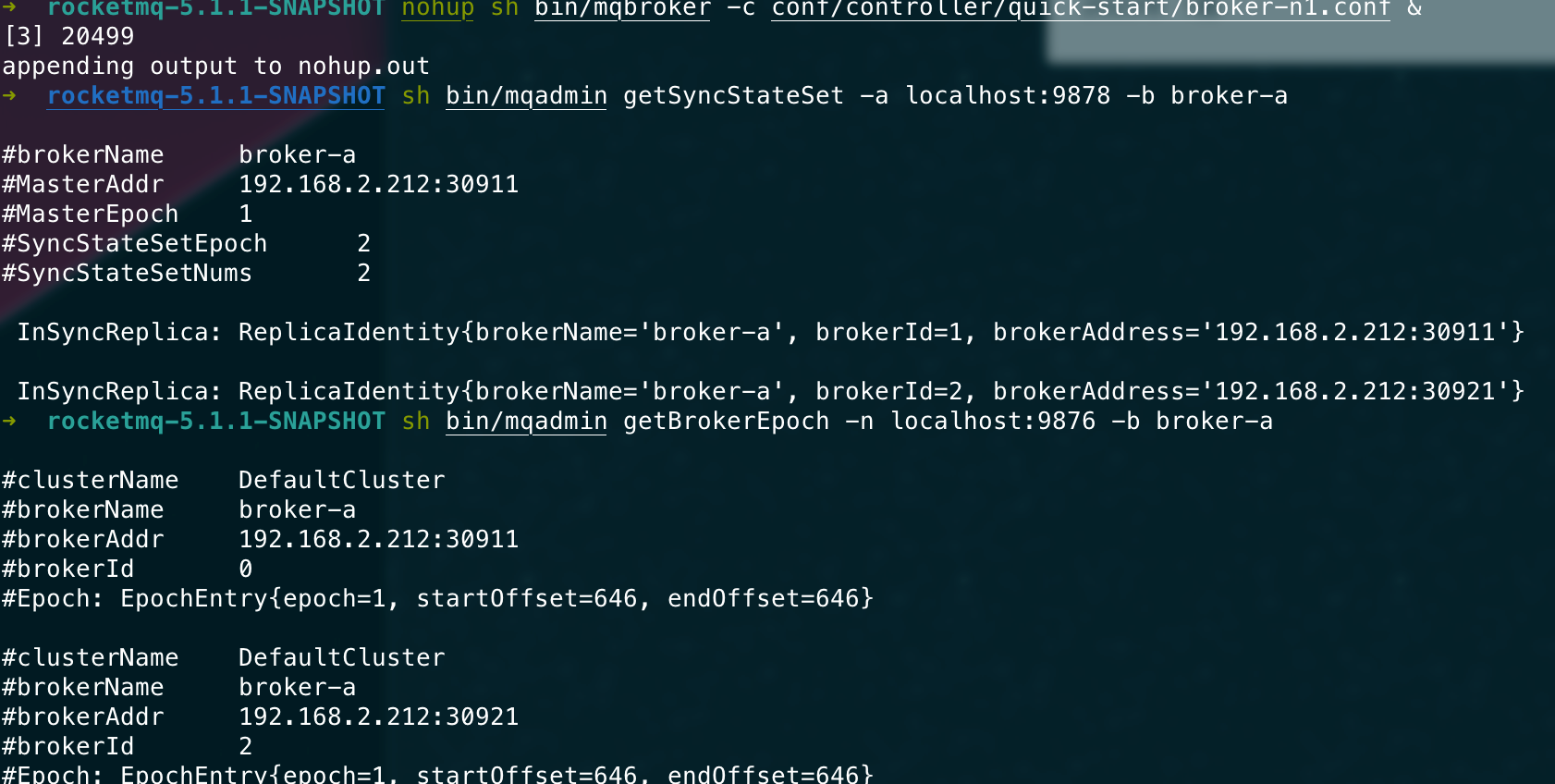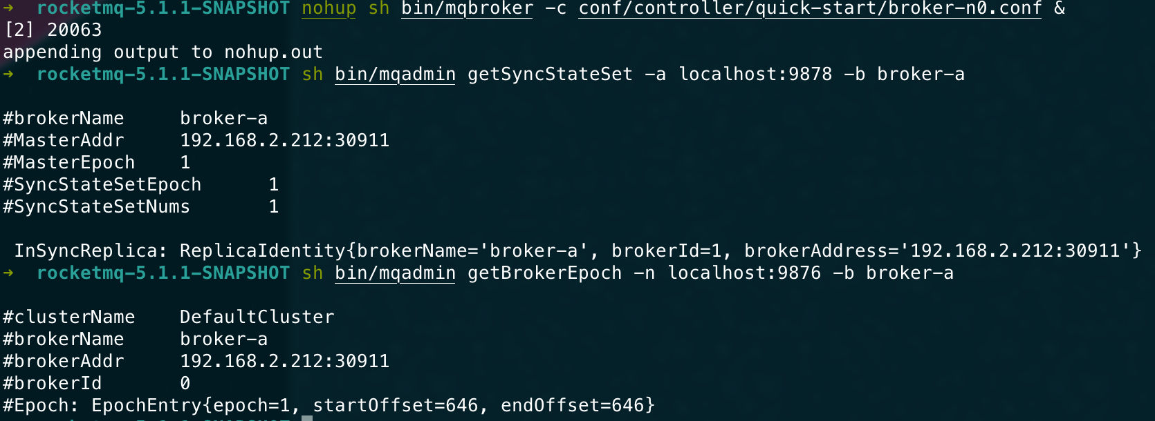 ## 升级方案 5.0以下版本升级则遵守之前的升级步骤。 5.0以上版本升级需要遵守以下步骤。 ### 升级controller 由于我们在controller里面更改了许多状态机的内部属性以及新版的brokerId分配的逻辑,因此controller需要进行升级。 1. 将旧版本Controller下线。 2. 清除Controller数据,也就是DLedger的数据文件,默认路径在`~/DLedgerController` 3. 上线新版本Controller。 ### 升级Broker 1. 将Broker从节点停机。 2. 将Broker主节点停机。 3. 将所有Broker的Epoch文件删除,即默认`~/store/epochFileCheckpoint`和`~/store/epochFileCheckpoint.bak`。 4. 将原来的主Broker先上线,等待该Broker成功当选为master。(可用admin命令`getSyncState`来检测) 5. 将原来的从Broker全部上线。 ### 测试 > 启动一个namesrv ```bash nohup sh bin/mqnamesrv & ``` > 启动一个旧版controller ```bash nohup sh bin/mqcontroller -c ./conf/controller/controller-standalone.conf & ``` > 查看controller是否被正确启动 ```bash sh bin/mqadmin getControllerMetaData -a localhost:9878 ```  > 先后启动旧版broker0和broker1 ```bash nohup sh bin/mqbroker -c conf/controller/quick-start/broker-n0.conf & ``` ```bash nohup sh bin/mqbroker -c conf/controller/quick-start/broker-n1.conf & ``` > 查看集群情况 ```bash sh bin/mqadmin getSyncStateSet -a localhost:9878 -b broker-a ```  > 发送消息 ```bash sh bin/mqadmin sendMessage -p "hello" -n localhost:9876 -b broker-a -t default ```  > 检查两个节点是否正确append ```bash sh bin/mqadmin getBrokerEpoch -n localhost:9876 -b broker-a ```  > controller下线 将controller进程杀死。 测试此时是否可以正常收发消息。  > 清除controller数据文件  > 上线新版controller  > 检查当前是否正常收发消息  > 分别将broker的从节点和主节点先后停机  > 清除每个broker的epoch文件  > 将原来的主broker先更新上线  > 从broker更新上线  > 测试收发消息  > 上线一个新节点broker2  > 下线broker0,触发切主  broker1成为master > 下线broker1,触发切主  > 测试消息收发  > 重启broker0和broker1 <img width="806" alt="image" src="https://user-images.githubusercontent.com/87409330/223159422-142bc372-be99-4440-95ba-9bf222bffd6c.png"> ### 兼容性 | | 5.0旧Controller | 新Controller | | --- | --- | --- | | 5.0旧Broker | 正常运行,可切换 | 若已主备确定则可正常运行,不可切换。若broker重新启动则无法上线 | | 新Broker | 无法正常上线 | 正常运行,可切换 | -- This is an automated message from the Apache Git Service. To respond to the message, please log on to GitHub and use the URL above to go to the specific comment. To unsubscribe, e-mail: [email protected] For queries about this service, please contact Infrastructure at: [email protected]