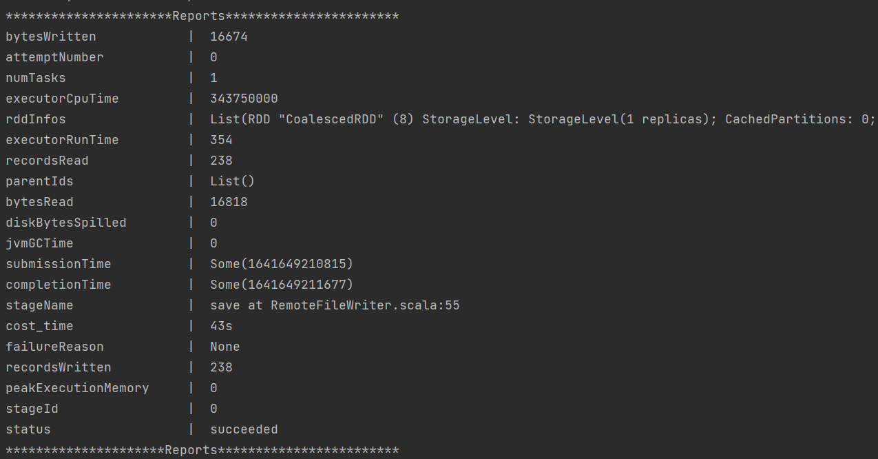 The following solutions can be used for plugin status monitoring: 1. Create a SparkMetricListener and register it in sparkcontext. 2. Add the indicators that need to be output the following is a sample output of our internal engineering test indicators:  need to confirm whether this option is feasible @garyelephant @CalvinKirs -- This is an automated message from the Apache Git Service. To respond to the message, please log on to GitHub and use the URL above to go to the specific comment. To unsubscribe, e-mail: [email protected] For queries about this service, please contact Infrastructure at: [email protected]