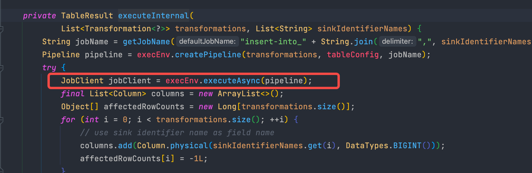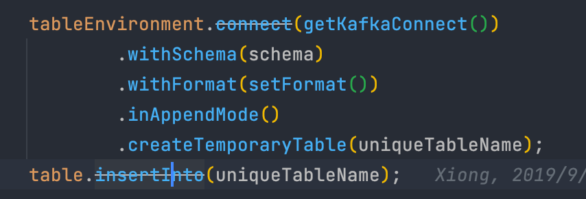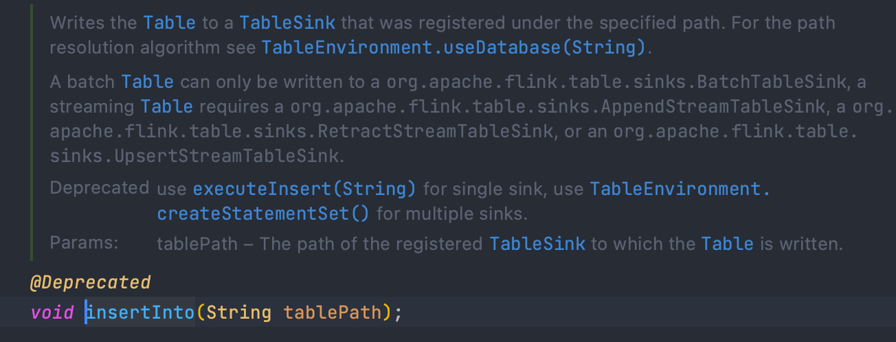 ### Search before asking - [X] I had searched in the [issues](https://github.com/apache/incubator-seatunnel/issues?q=is%3Aissue+label%3A%22bug%22) and found no similar issues. ### What happened when i test kafka to kafka task.i fount no output。   i find that if after 1.11 use table.insertInto(uniqueTableName); and then use flinkEnvironment.getStreamExecutionEnvironment().execute(flinkEnvironment.getJobName()); it cannot work. and must be use StreamTableEnvironment.execute()  i see use executeInsert(String) for single sink.but i also have a try. but i find it would submit 2 job. because all excuteXXX is table and tableEnvironment finally executeAsync a job named insert-into_XXXXX  so in kafka table sink ,could use datastream api to add a kafka sink. or use StreamTableEnvironment.execute() in FlinkStreamExecution.java to submit job ? ### SeaTunnel Version latest ### SeaTunnel Config ```conf env { # You can set flink configuration here execution.parallelism = 1 execution.planner = blink #execution.checkpoint.interval = 10000 #execution.checkpoint.data-uri = "hdfs://localhost:9000/checkpoint" } source { # This is a example source plugin **only for test and demonstrate the feature source plugin** KafkaTableStream { result_table_name = test topics = test consumer.group.id = "seatunnel#2" consumer.bootstrap.servers = "127.0.0.1:9092" schema = "{\"name\":111,\"age\":\"aaaa\"}" format.type = json format.field-delimiter = "," format.allow-comments = "true" format.ignore-parse-errors = "true" } } transform { } sink { KafkaTable { producer.bootstrap.servers = "127.0.0.1:9092" topics = sink } } ``` ### Running Command ```shell ide ``` ### Error Exception ```log . ``` ### Flink or Spark Version 1.13 ### Java or Scala Version 8 ### Screenshots _No response_ ### Are you willing to submit PR? - [X] Yes I am willing to submit a PR! ### Code of Conduct - [X] I agree to follow this project's [Code of Conduct](https://www.apache.org/foundation/policies/conduct) -- This is an automated message from the Apache Git Service. To respond to the message, please log on to GitHub and use the URL above to go to the specific comment. To unsubscribe, e-mail: [email protected] For queries about this service, please contact Infrastructure at: [email protected]