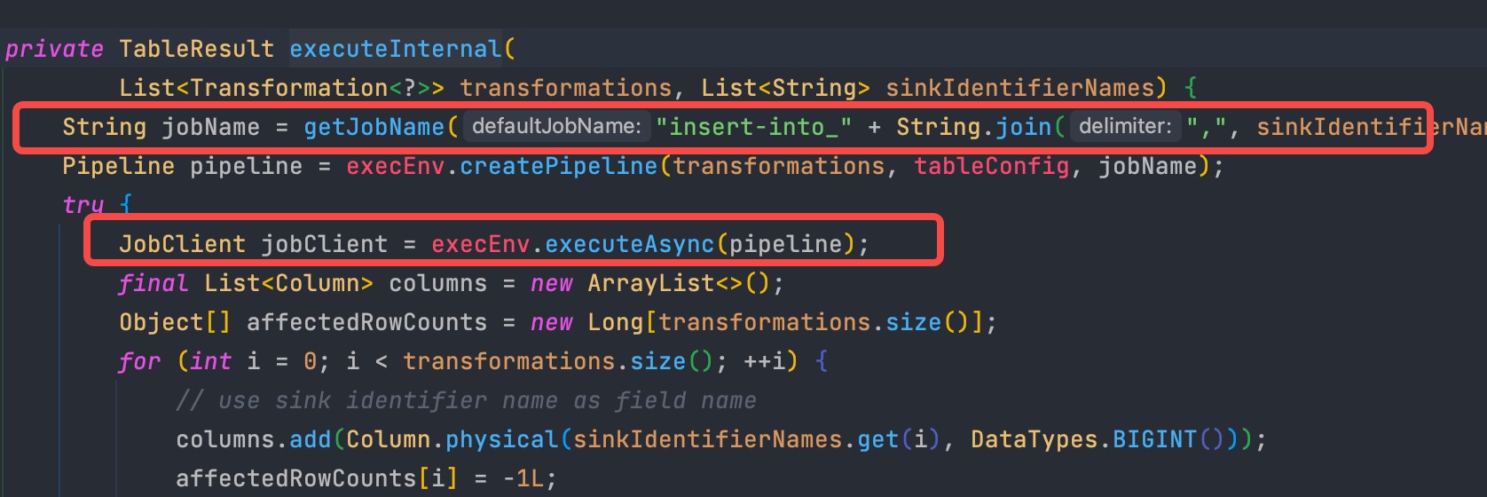 i have used table.excuteinsert to do it ,but i find it submit two jobs. because excuteinsert will execEnv.executeAsync() to submit a job named 'insert-into_', and if use old planner ,it will send two same msg to sink.  i think tableenv.excute and StreamExecutionEnvironment().execute() only can excute once. the kafkatable.java is used jsonFormatDescriptor. maybe we can use datatestream api FlinkKafkaProducer and JsonRowSerializationSchema . -- This is an automated message from the Apache Git Service. To respond to the message, please log on to GitHub and use the URL above to go to the specific comment. To unsubscribe, e-mail: [email protected] For queries about this service, please contact Infrastructure at: [email protected]
