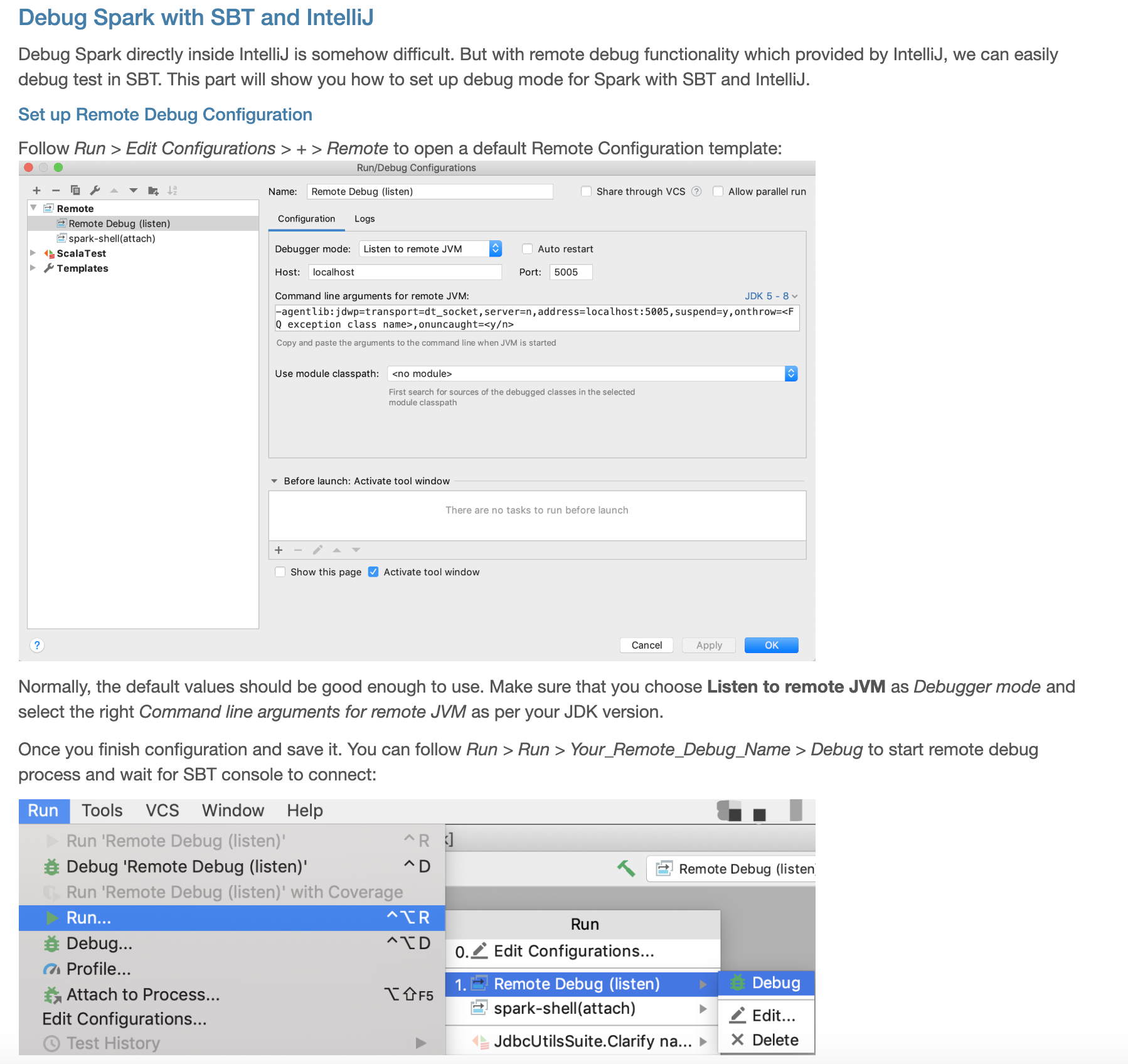 Ngone51 opened a new pull request #259: Add remote debug guidance URL: https://github.com/apache/spark-website/pull/259 Note I added the guidance after the *IDE Setup > IntelliJ* chapter: