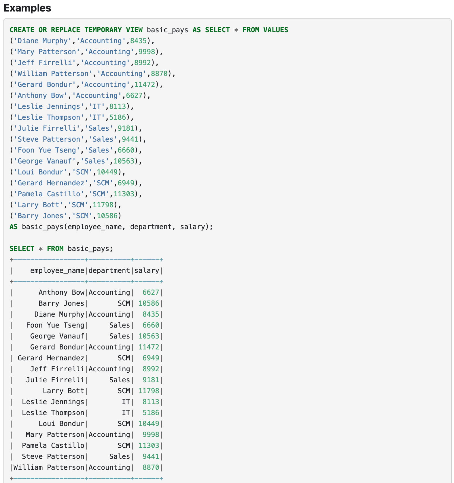 +AS basic_pays(employee_name, department, salary);