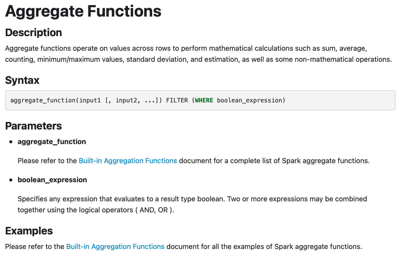 Functions](sql-ref-functions-builtin.html#aggregate-functions) document for a