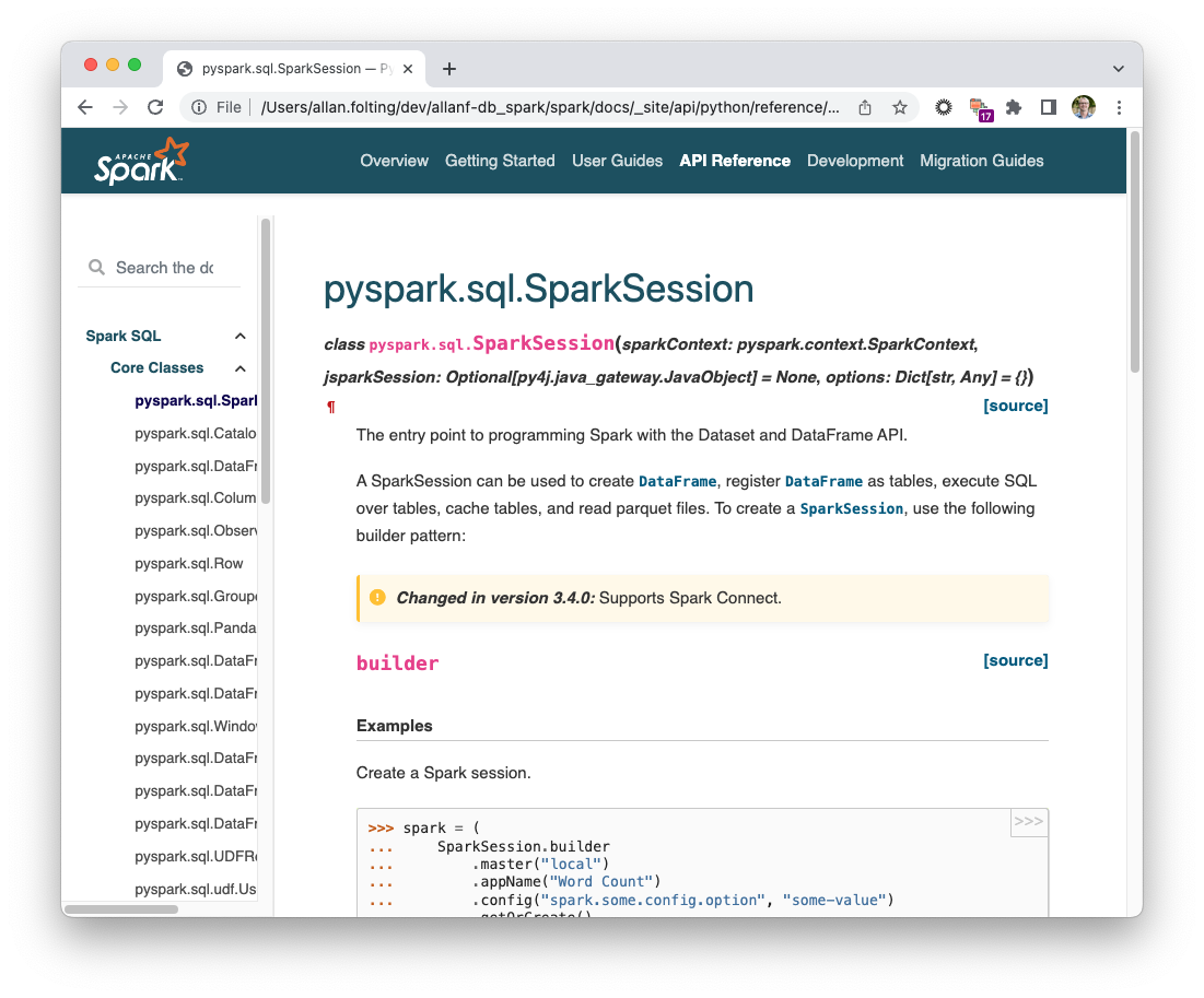the PySpark documentation.