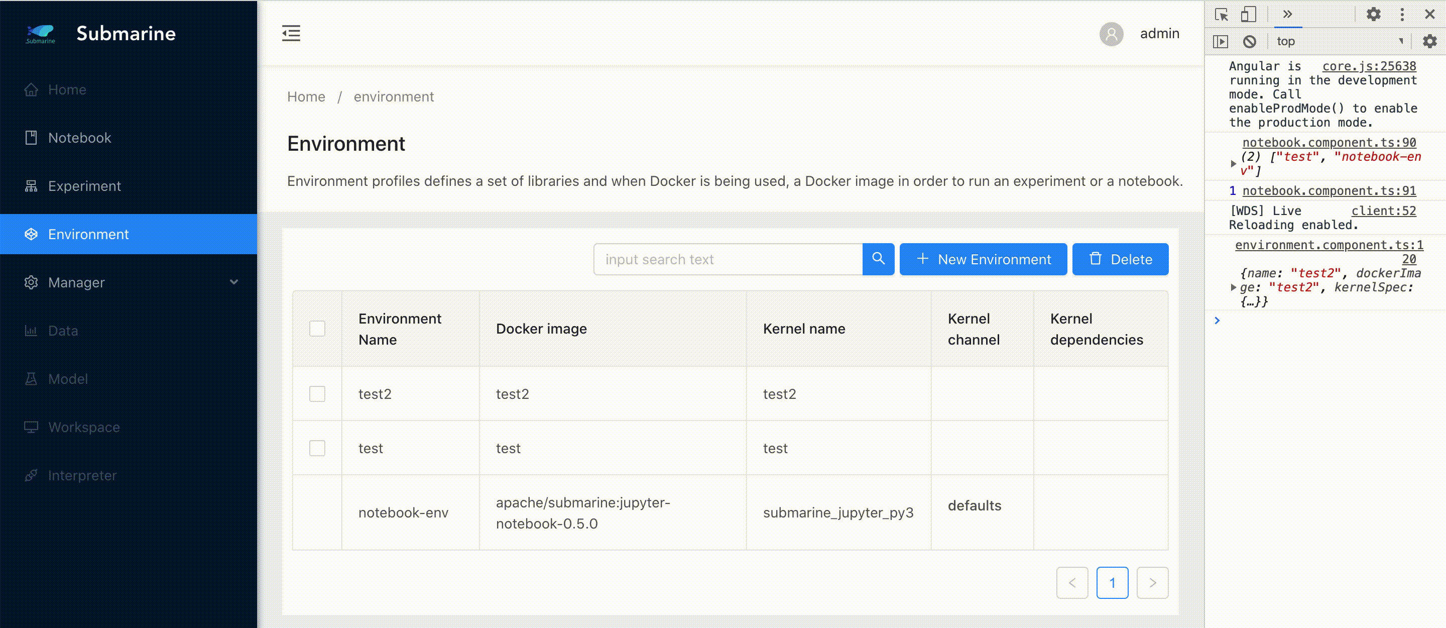 ### What is this PR for? If there is no environment in submarine server, clicking the button "+ New notebook" will output error message "ERROR TypeError: Cannot read property 'environment' of null" to the web console and the modal do not open. 1. Set notebook-env can't be deleted in environment page of UI. 2. Set notebook-env as default environment when create new notebook in notebook page of UI. ### What type of PR is it? [Bug Fix] ### Todos ### What is the Jira issue? https://issues.apache.org/jira/browse/SUBMARINE-673 ### How should this be tested? https://travis-ci.org/github/kobe860219/submarine/builds/742502456 ### Screenshots (if appropriate)  ### Questions: * Does the licenses files need update? No * Is there breaking changes for older versions? No * Does this needs documentation? No ---------------------------------------------------------------- This is an automated message from the Apache Git Service. To respond to the message, please log on to GitHub and use the URL above to go to the specific comment. For queries about this service, please contact Infrastructure at: [email protected]