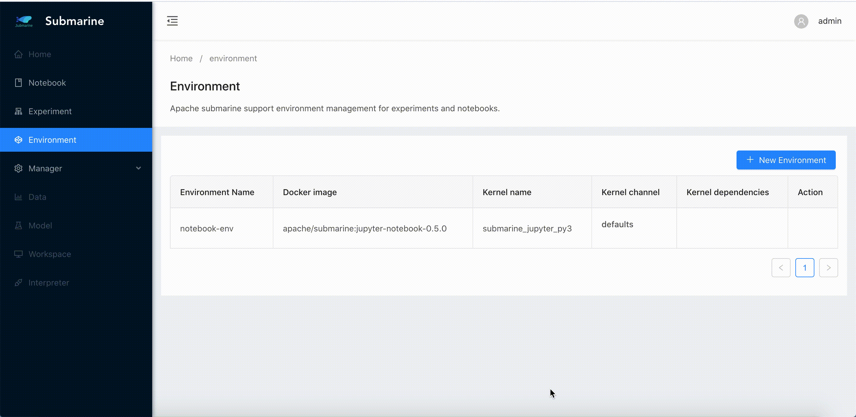 ### What is this PR for? Refactor environment page as below:  ### What type of PR is it? [Refactoring] ### Todos ### What is the Jira issue? https://issues.apache.org/jira/browse/SUBMARINE-712 ### How should this be tested? https://travis-ci.org/github/kobe860219/submarine/builds/756909341 ### Screenshots (if appropriate)  ### Questions: * Does the licenses files need update? No * Is there breaking changes for older versions? No * Does this needs documentation? No ---------------------------------------------------------------- This is an automated message from the Apache Git Service. To respond to the message, please log on to GitHub and use the URL above to go to the specific comment. For queries about this service, please contact Infrastructure at: [email protected]