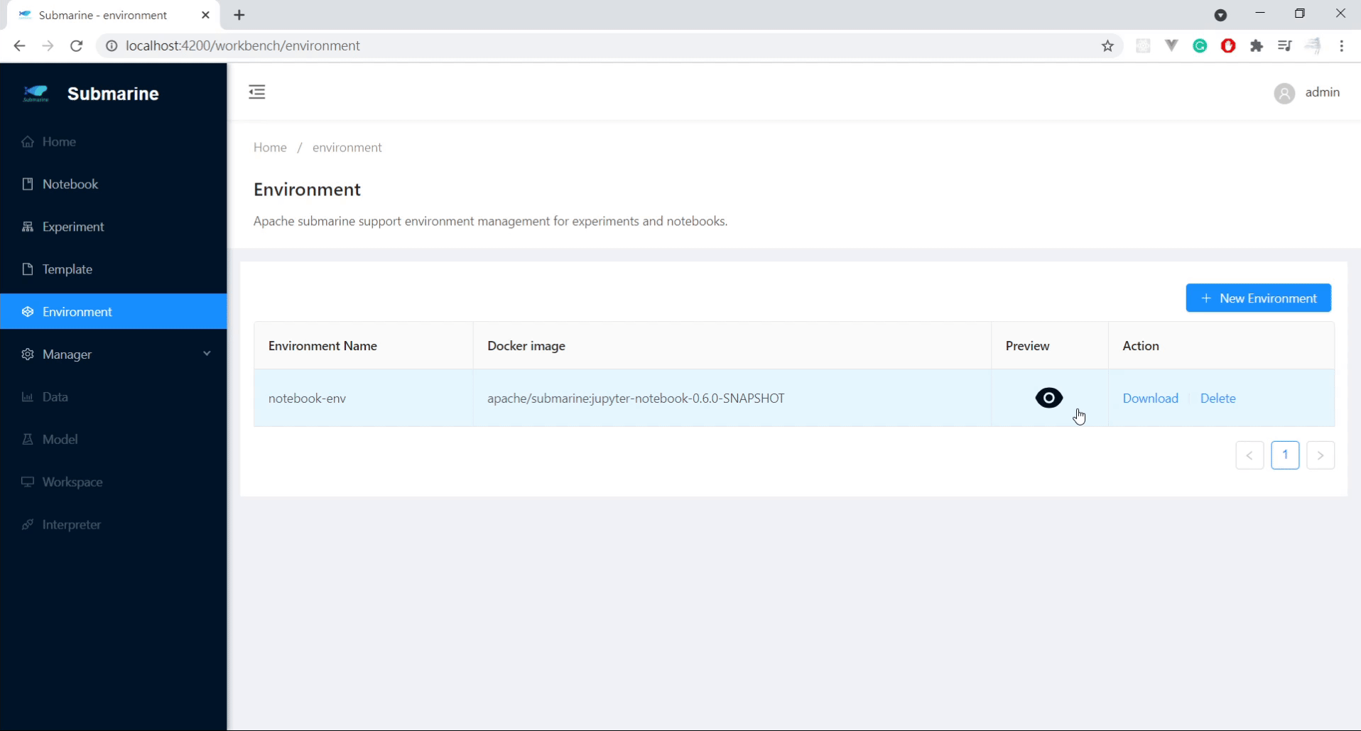 ### What is this PR for? * Refactor the environment list. * Add the preview environment spec button. * Download button for environment spec. ### What type of PR is it? [Refactoring] ### Todos ### What is the Jira issue? https://issues.apache.org/jira/browse/SUBMARINE-802 ### How should this be tested? Test download case is created in e2e test. ### Screenshots (if appropriate)  ### Questions: * Do the license files need updating? No * Are there breaking changes for older versions? No * Does this need new documentation? No -- This is an automated message from the Apache Git Service. To respond to the message, please log on to GitHub and use the URL above to go to the specific comment. For queries about this service, please contact Infrastructure at: [email protected]