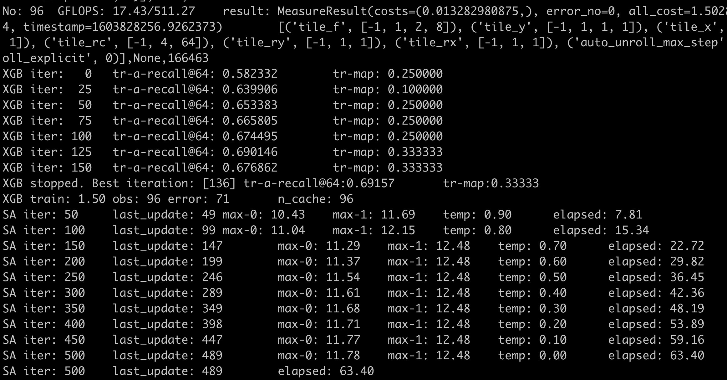 I tested your autotvm implementation and found it is significantly slower. To do the test, you can run this tutorial (https://github.com/apache/incubator-tvm/blob/main/tutorials/autotvm/tune_conv2d_cuda.py) and replace the n_trial=20 with n_trial=100 The number we care about is the time spent on simulated annealing which actually uses the xgboost_cost_model.py modified by you. This is the screenshot before your PR. You can see elapsed: 63.40 in the last line, which means it takes 63.40 ms to do simulated annealing.  However, with your PR, the number becomes 194.67 <img width="1152" alt="Screen Shot 2020-10-27 at 12 47 15 PM" src="https://user-images.githubusercontent.com/15100009/97355886-cff21380-1854-11eb-9058-72eb1ac9f844.png"> I don’t understand why the autotvm part is required for that PR, because autotvm and auto-scheduler are totally independent. Can you delete autotvm files in that PR? The test machine is a 24-core Intel E5 ---------------------------------------------------------------- This is an automated message from the Apache Git Service. To respond to the message, please log on to GitHub and use the URL above to go to the specific comment. For queries about this service, please contact Infrastructure at: [email protected]