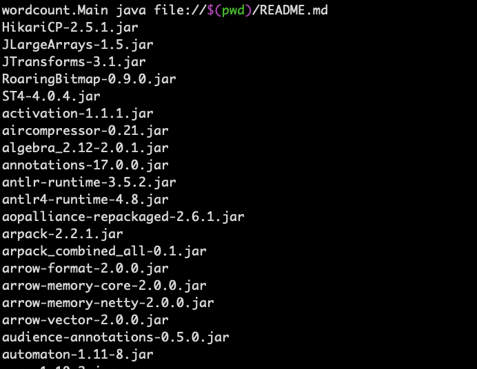 Hi there, thanks for creating this issue. I am new to wayang and when I tried to follow the current README to run the wordcount example, I met the problem that there is no wayang-submit script. I finally managed to run the example with wayang-submit and the process is as follows: #### 1. Get the wayang-submit binary As @zkaoudi mentioned, there is no wayang-submit binary file in the downloaded zip file. To get the binary, I build the main branch of the repo with `./mvnw clean install -DskipTests ` and finally get the jar in the repo's `bin` folder:  #### 2. Copy the binary to extracted apache-wayang-0.6.0-incubating folder and relevant jars for the WordCount example After copying wayang-submit to extracted apache-wayang-0.6.0-incubating folder, I tried to run command like `wayang-submit org.apache.wayang.apps.wordcount.Main java file://$(pwd)/README.md`, but I met many errors about class missing. After some debugging, I make dir named 'jars' under WAYANG_HOME (it looks like Wayang will add jars under WAYANG_HOME/jars into the classpath) and copied following jars from the project repo into it(these jars should be built or downloaded by maven after building the project).  #### 3. Run `wayang-submit` with WordCount example After step 1 and 2, I can run: ``` wayang-submit org.apache.wayang.apps.wordcount.Main java file://$(pwd)/README.md ``` and get the output:  So according to my experience, I believe there are at least 2 more things we may need to take care: 1. Add necessary jars into the released package 2. Avoid printing some meaningless info in the terminal like:  3. We may need to get rid of `aws-java-sdk-bundle-1.11.271.jar` dependency when running locally. I hope my experience can help others who just want to give a try on the quickstart and I am willing to help to make this process more smooth and user-friendly. -- This is an automated message from the Apache Git Service. To respond to the message, please log on to GitHub and use the URL above to go to the specific comment. To unsubscribe, e-mail: [email protected] For queries about this service, please contact Infrastructure at: [email protected]