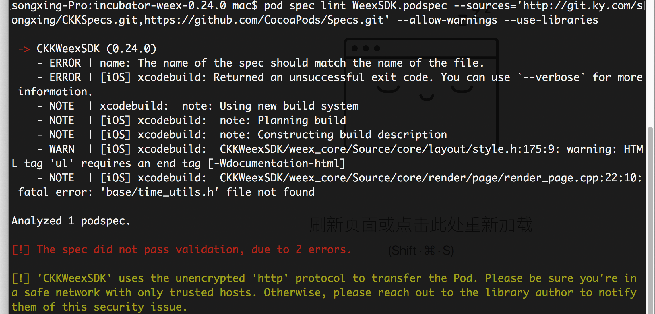 xuegeliu opened a new issue #2613: [iOS] 制作私有库时报错 URL: https://github.com/apache/incubator-weex/issues/2613 版本 0.24.0 weex_core/Source/core/render/page/render_page.cpp:22:10: fatal error: 'base/time_utils.h' file not found
